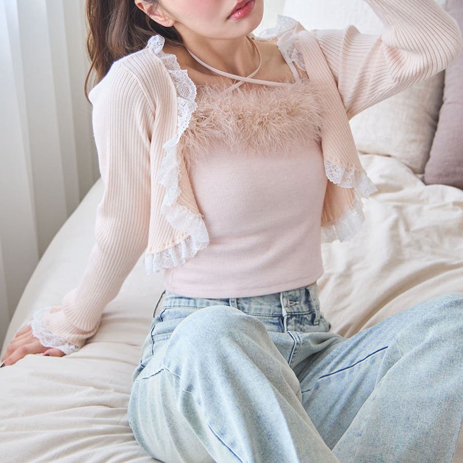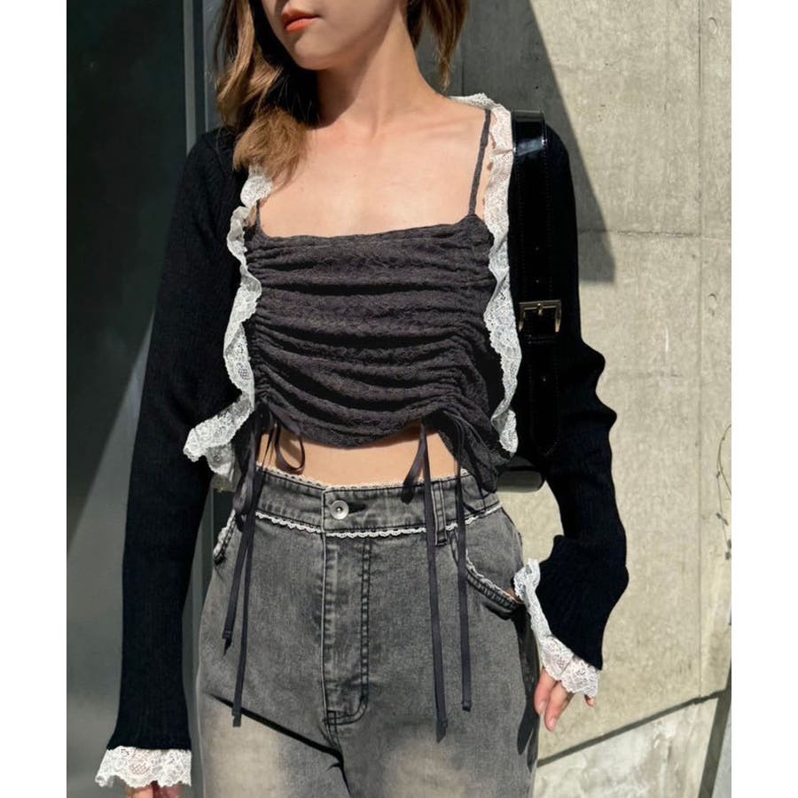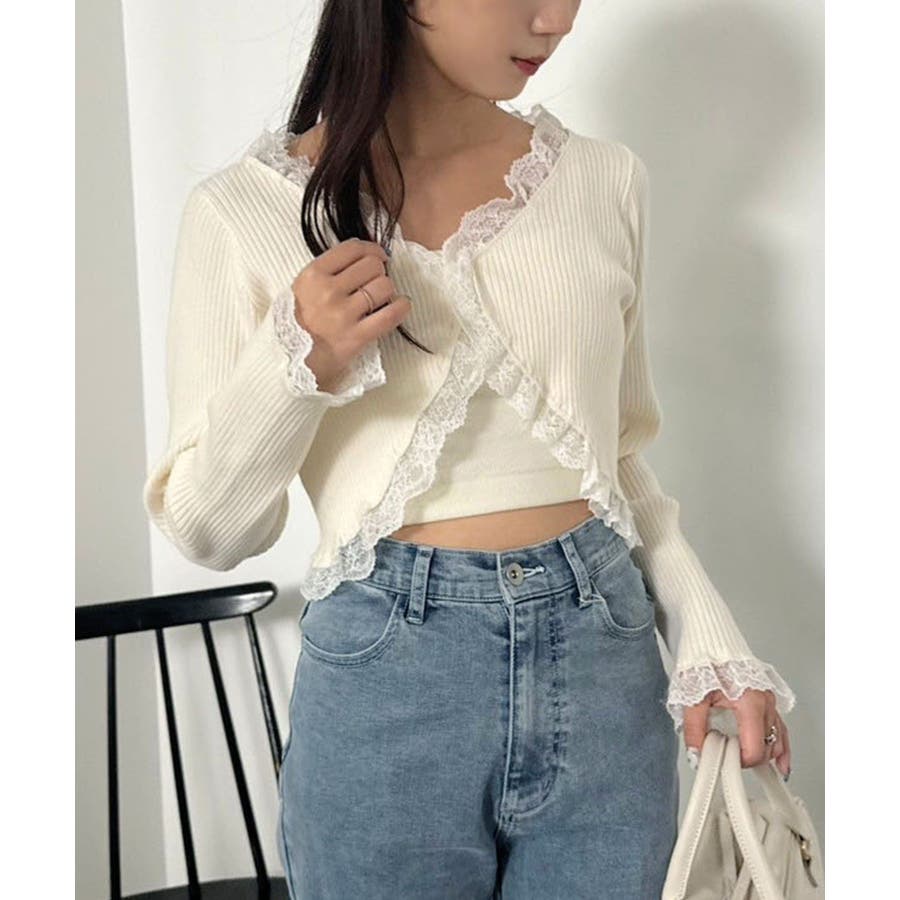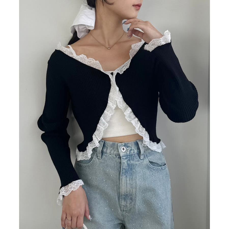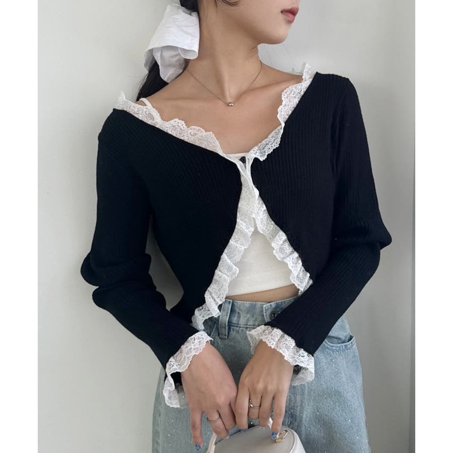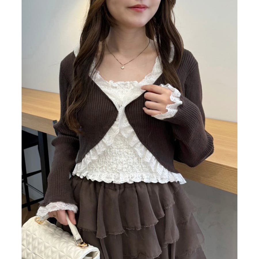 ショート丈でこなれ感があり、レースが華やかさをプラスしてくれるボレロカーディガン