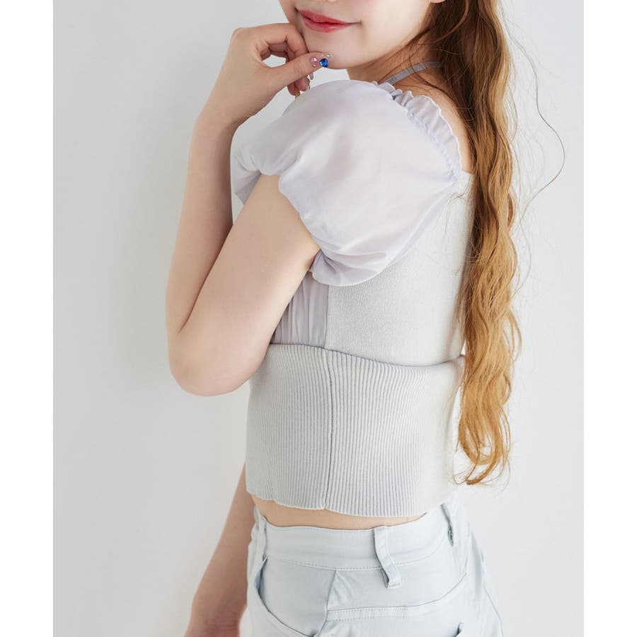 ブラウスとニットがドッキングしたデザインです。