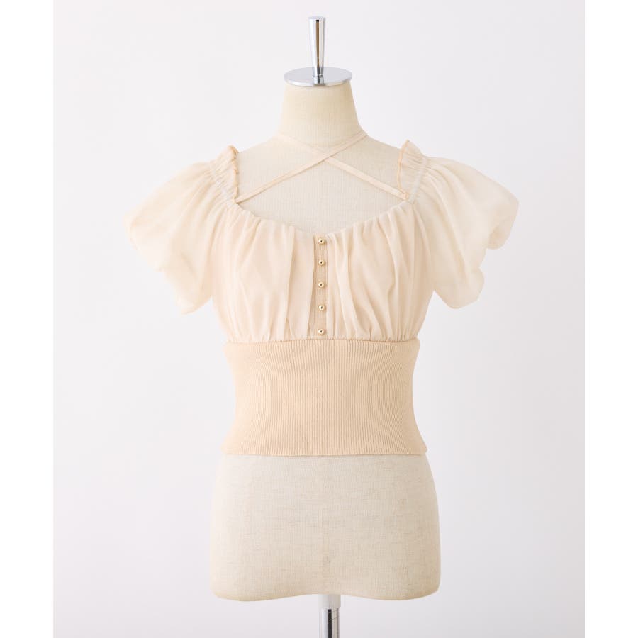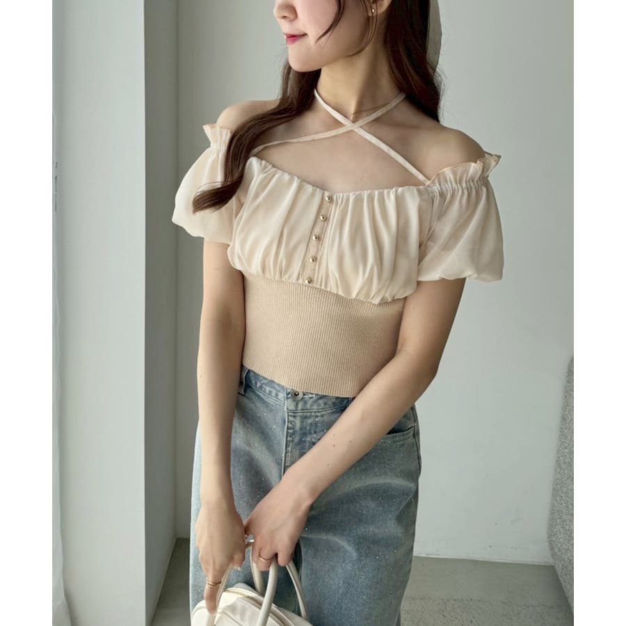 【one after another】オフショルクロスリボンニット