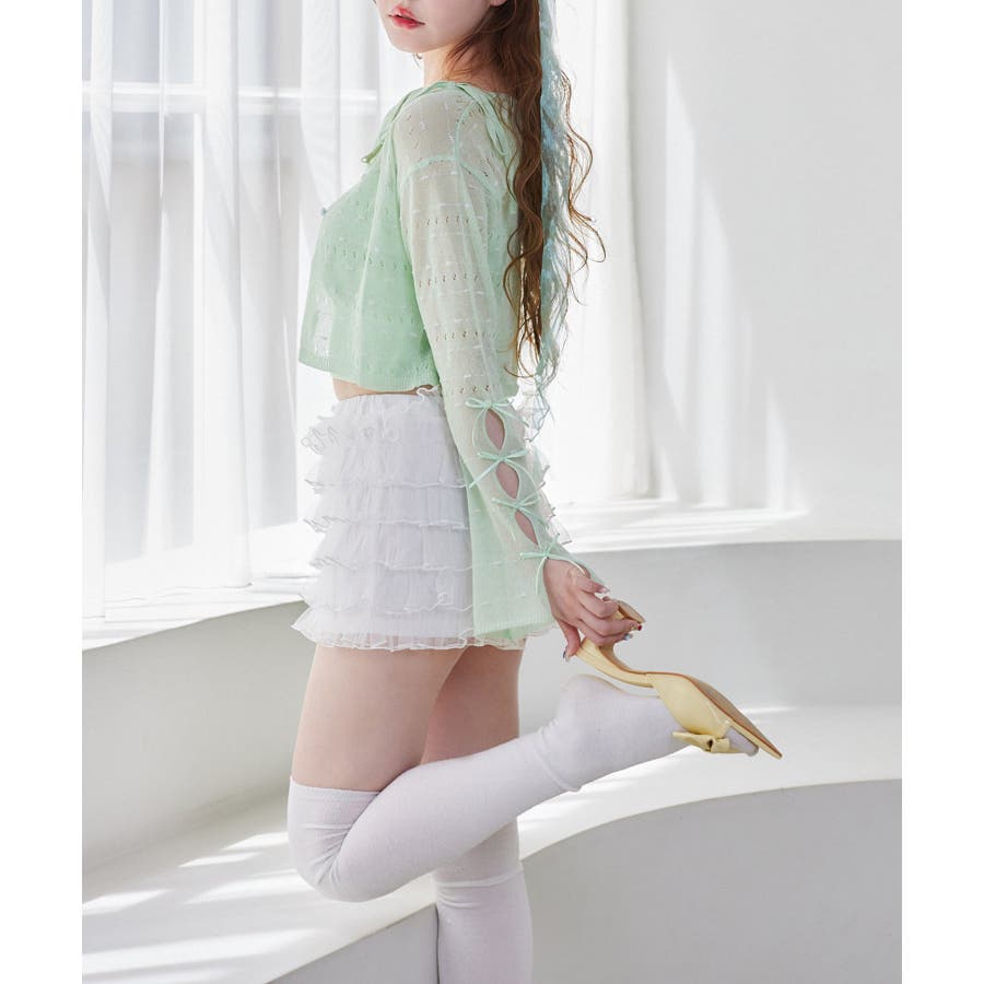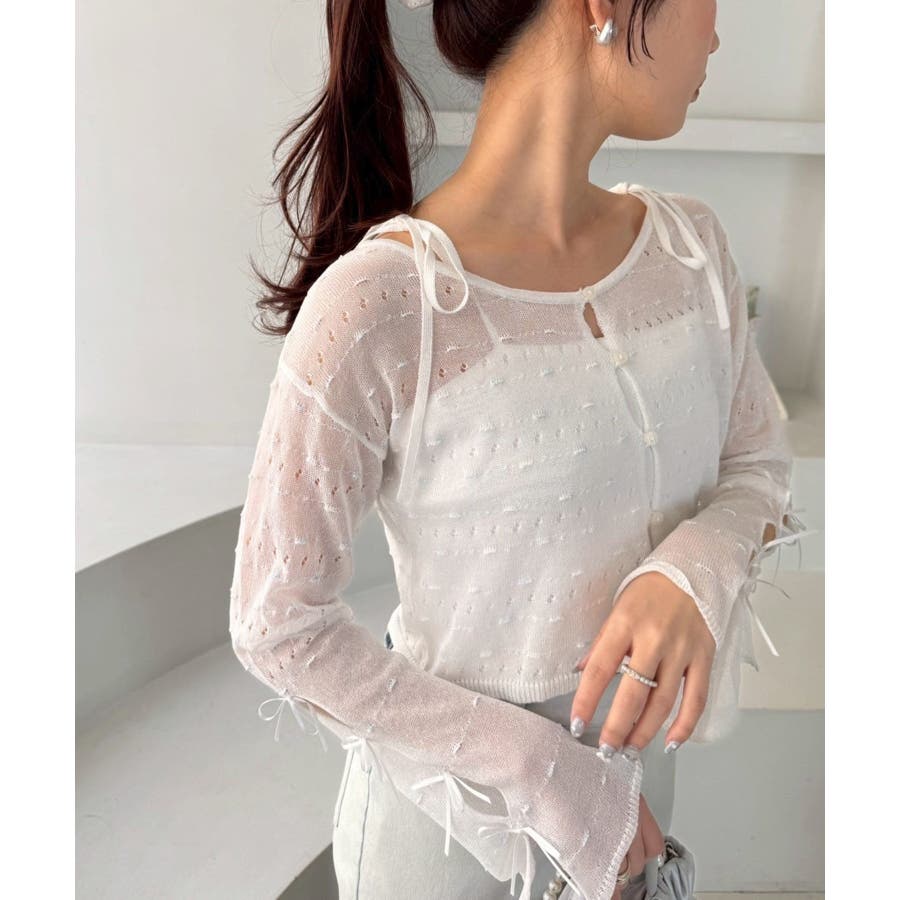 袖口にはさりげなくリボンデザインを施し、フェミニンなアクセントをプラス◎
