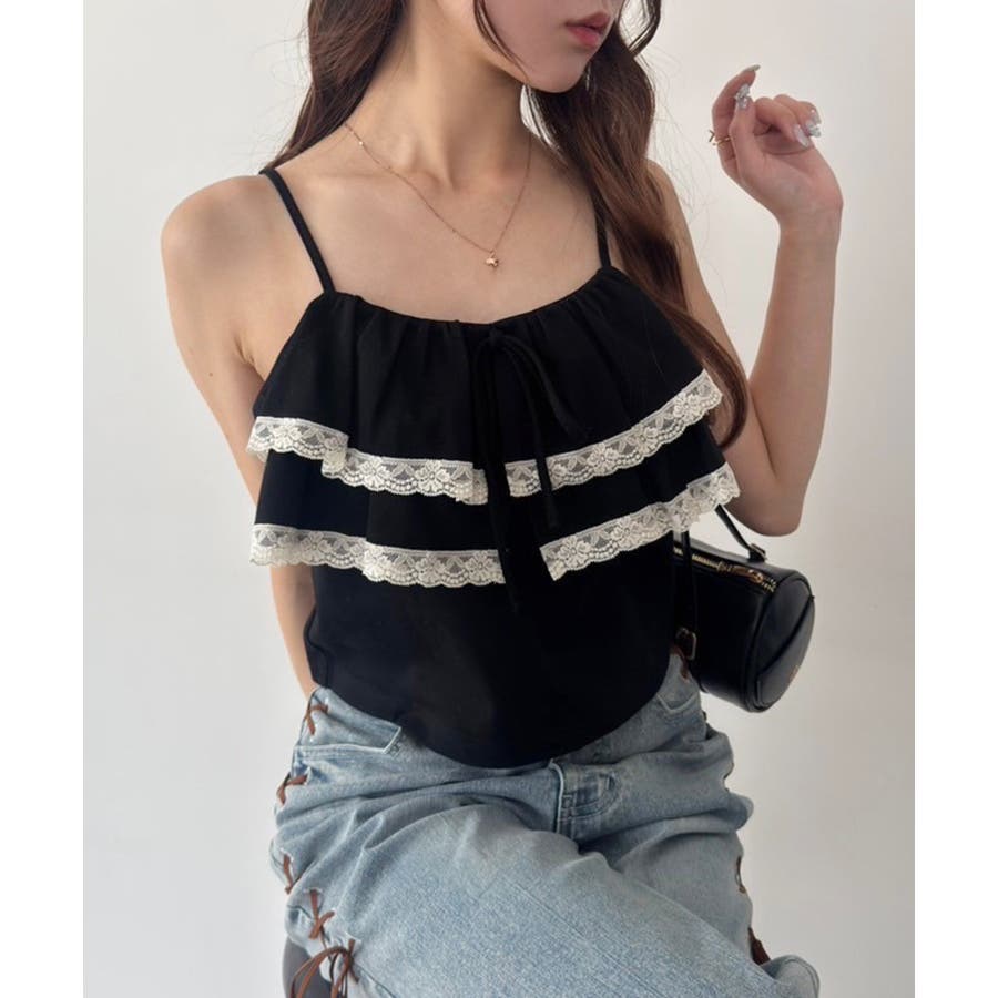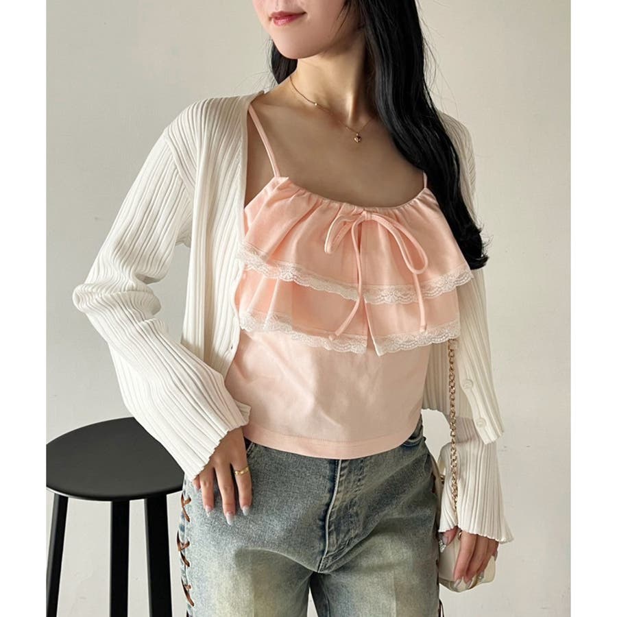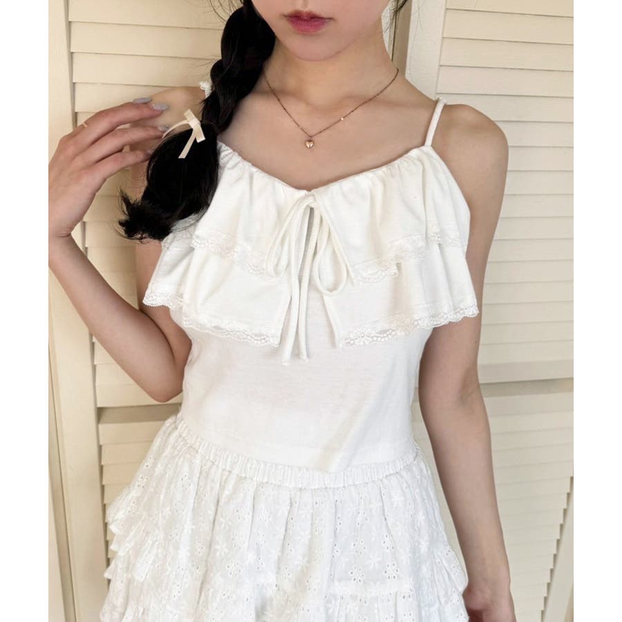 コーデのアクセントになるリボンとフリルがポイントのキャミソール
