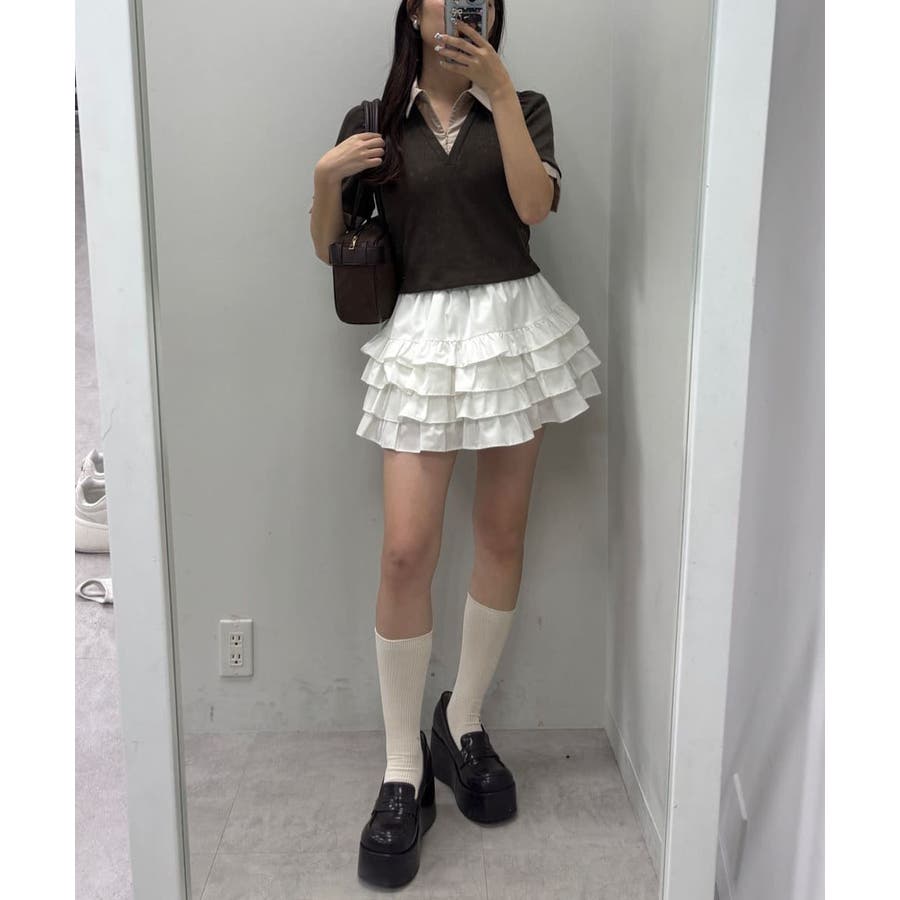 プリーツスカート×厚底スニーカーで韓国スタイルに
