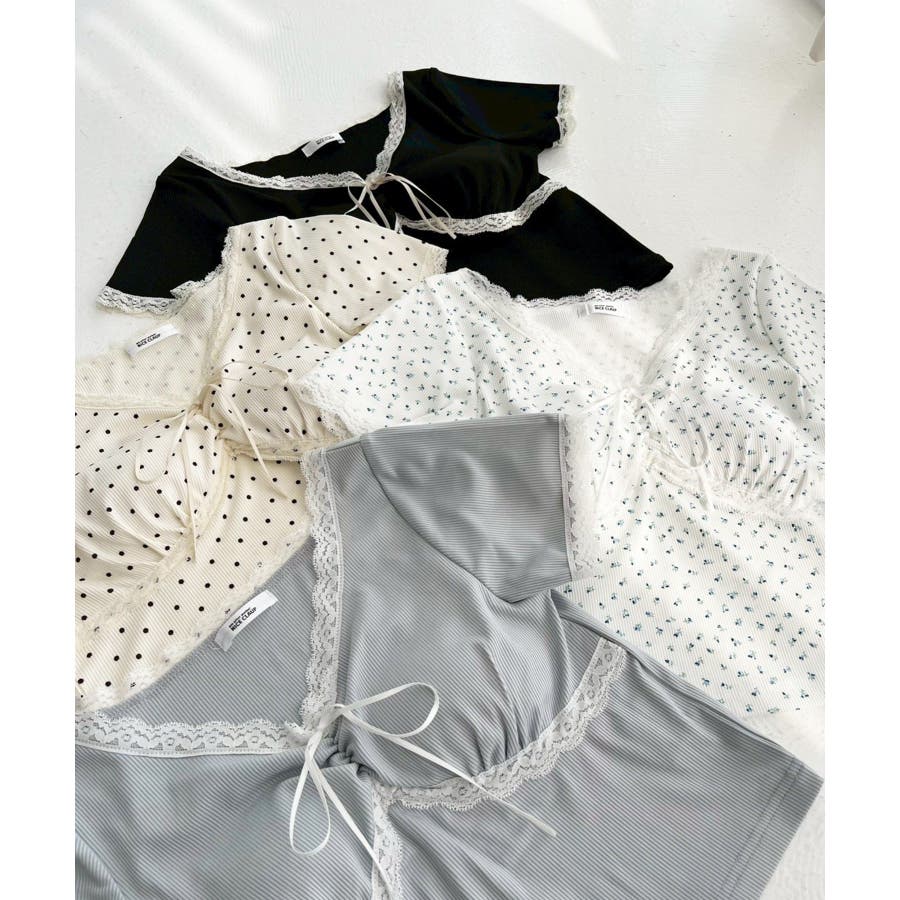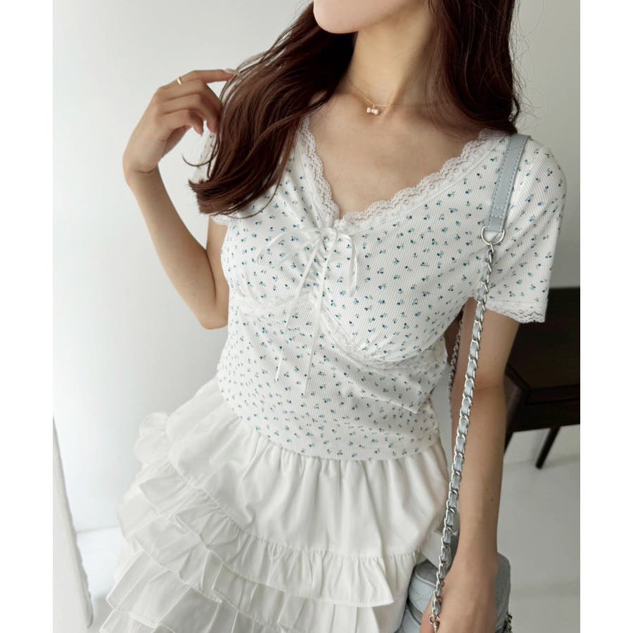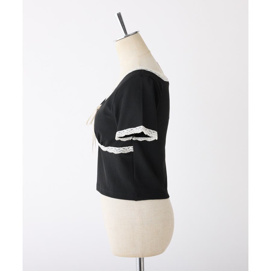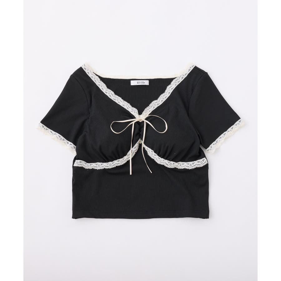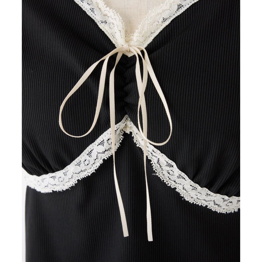 配色のレースデザインがコーデのアクセントになるカップ付きトップス。