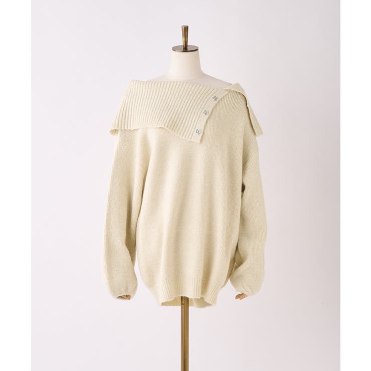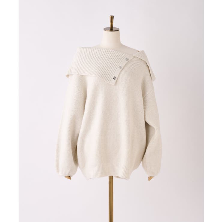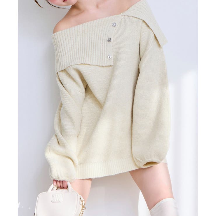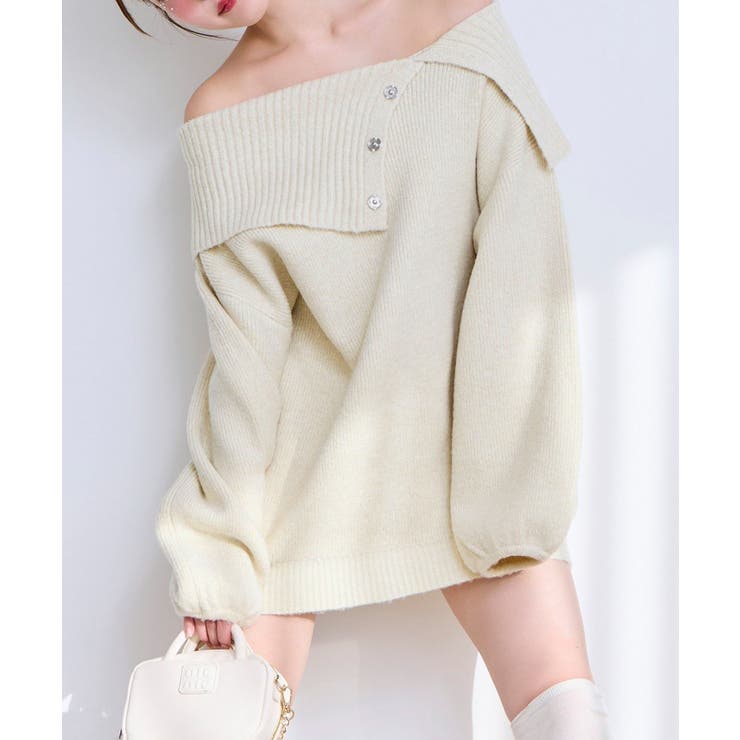 オフショル部分は大きく折り返しているのでデコルテを綺麗に見せ、