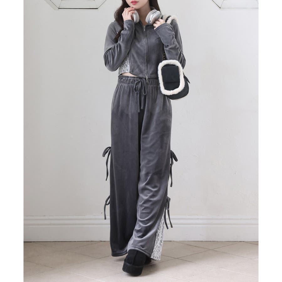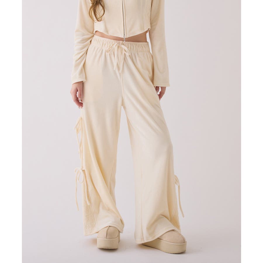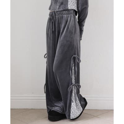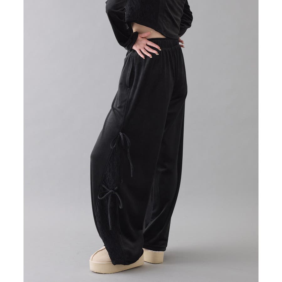 サイドのレースデザインとリボンがポイントのベロアパンツ。