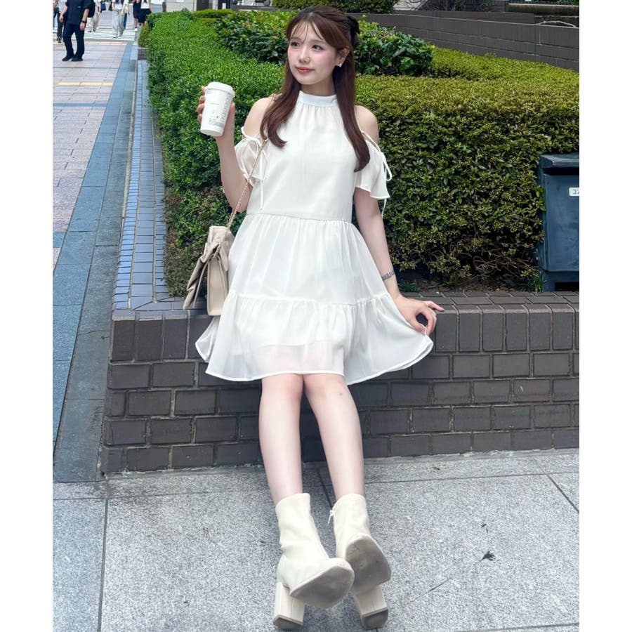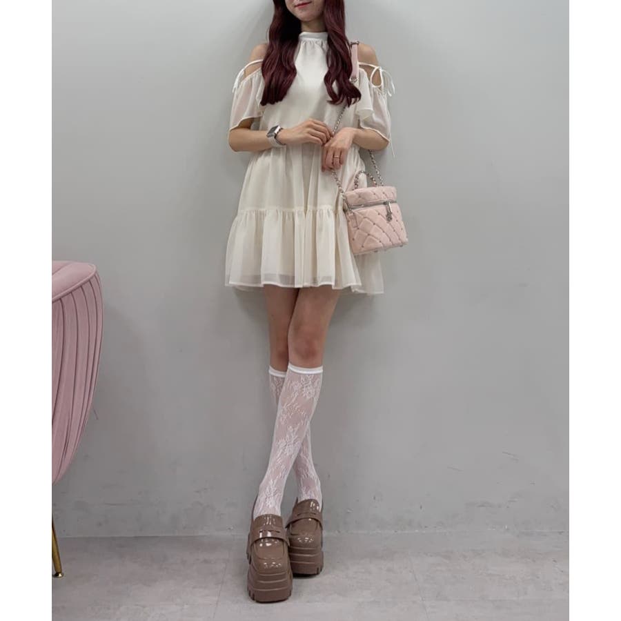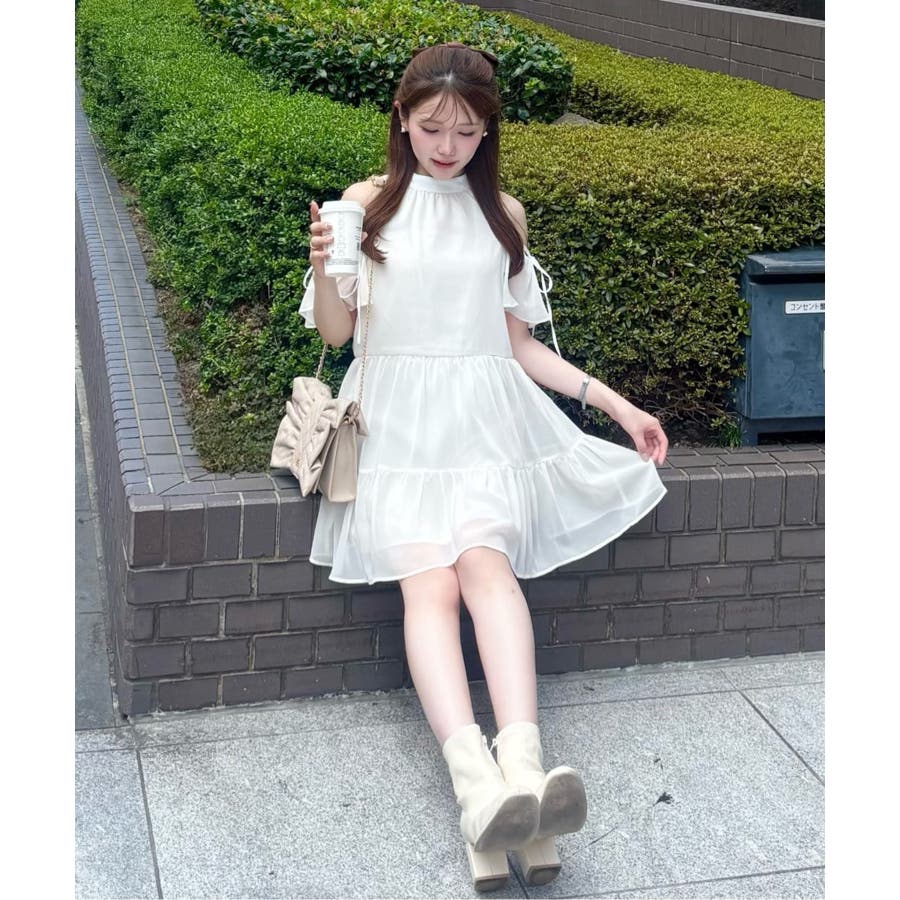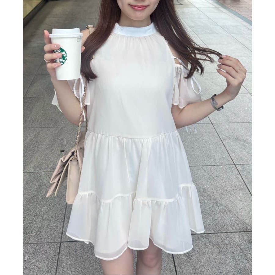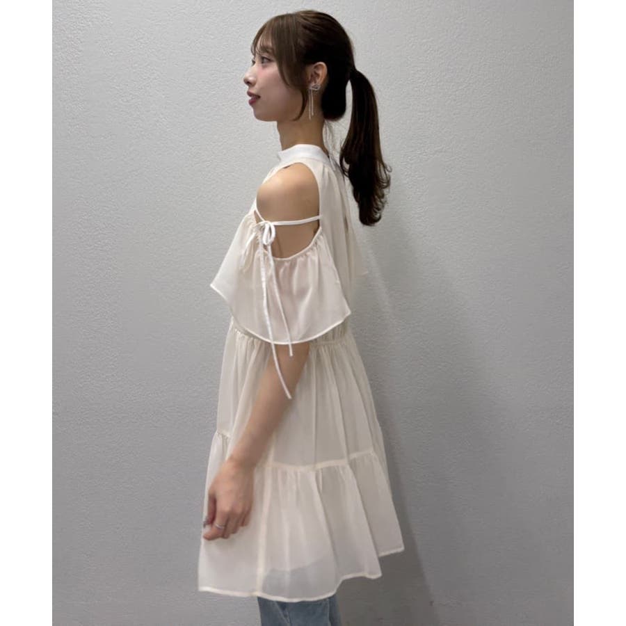 肩にはフリルを施し、フェミニンさをプラスしたデザインに仕上げました。