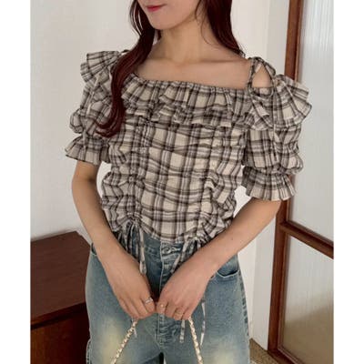 RMAF Remindmeandforever olivedesolive niceclaup 秋 秋服 秋物 冬 冬服 冬物 春 春服 春物 韓国 韓国系 韓国風 韓国ファッション 10代 20代 30代 大人 人気 大人かわいい 大人カジュアル トレンド 新作 プチプラ ブラウス 半袖ブラウス チェック柄 0152040050