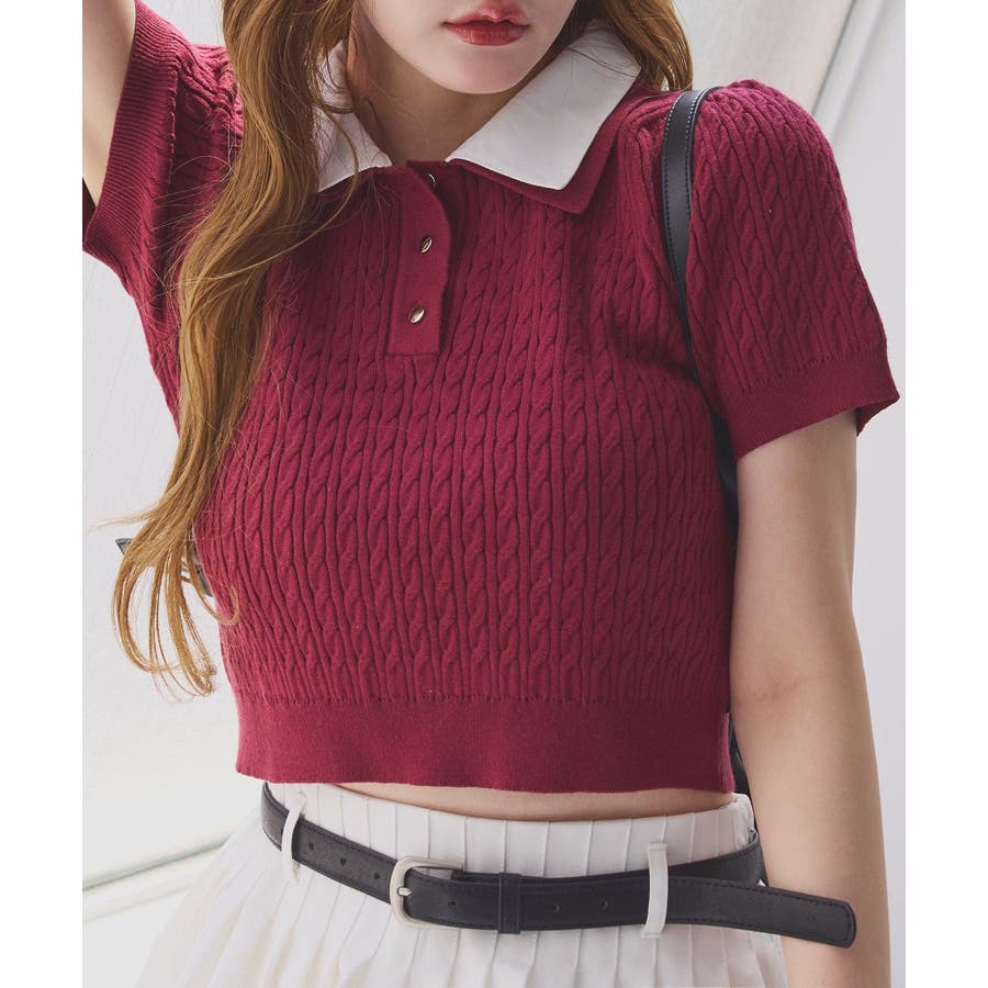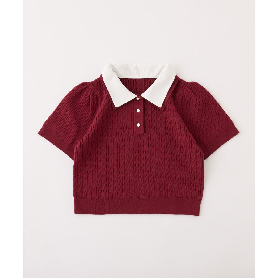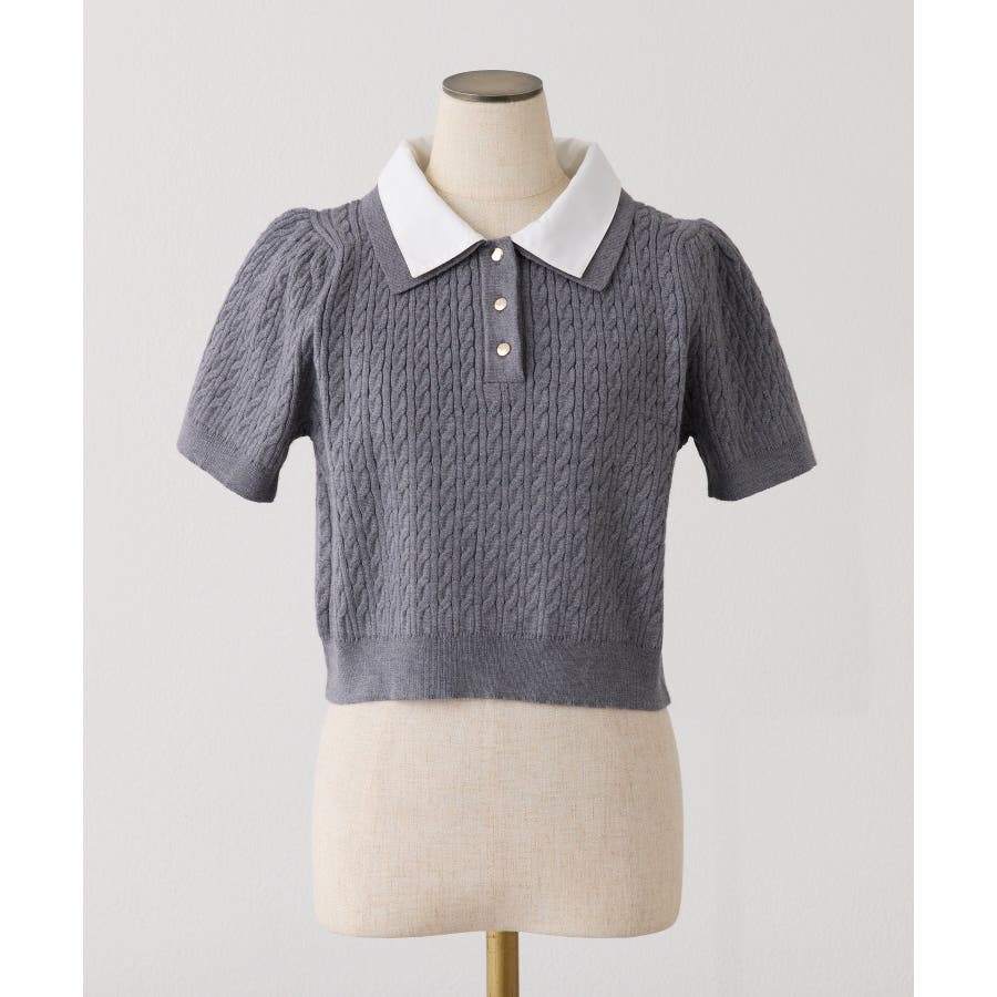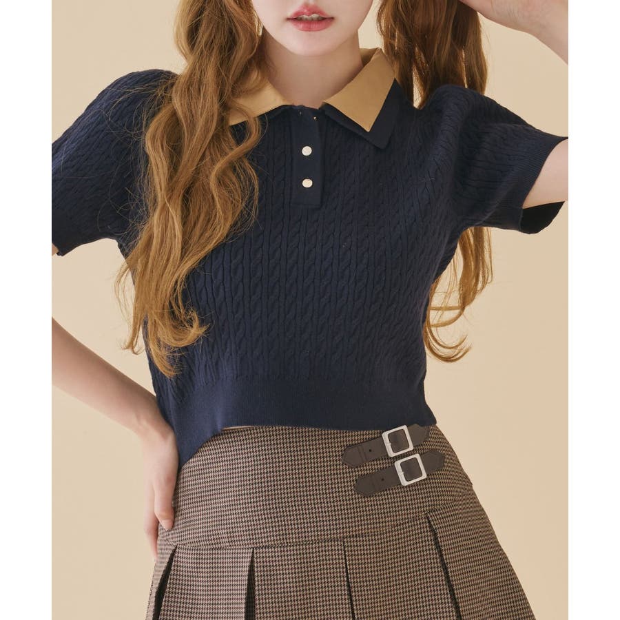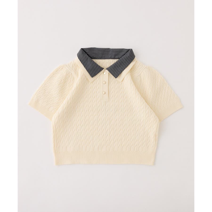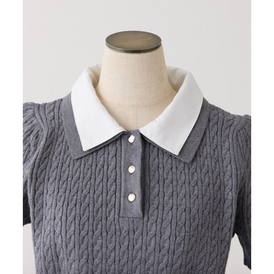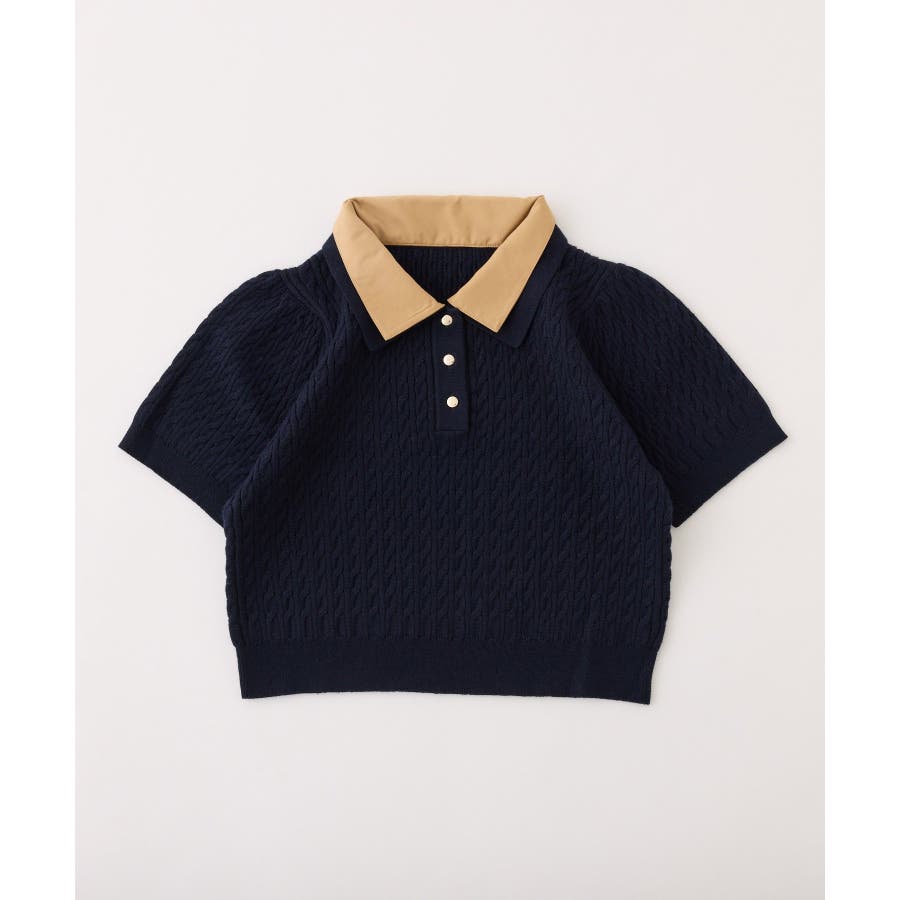 ケーブルポロニットさらっとしたニット素材で着心地もよく、