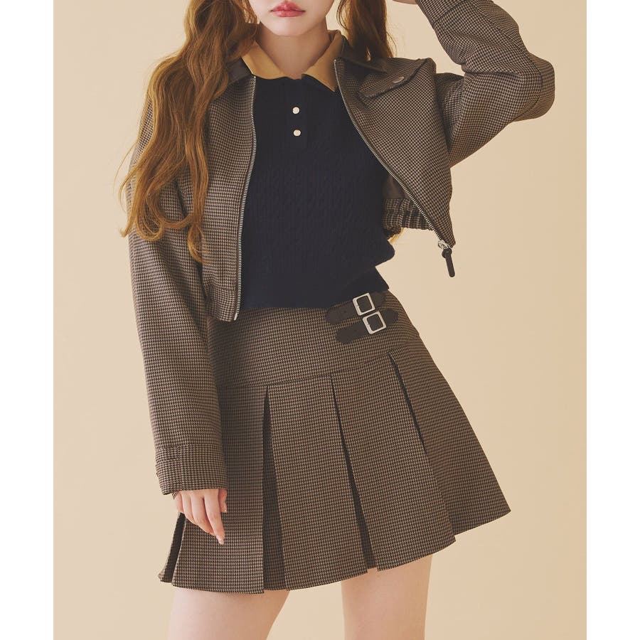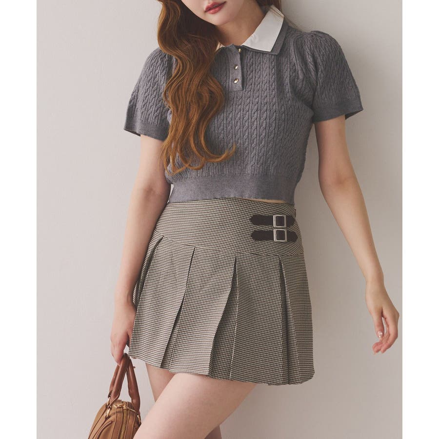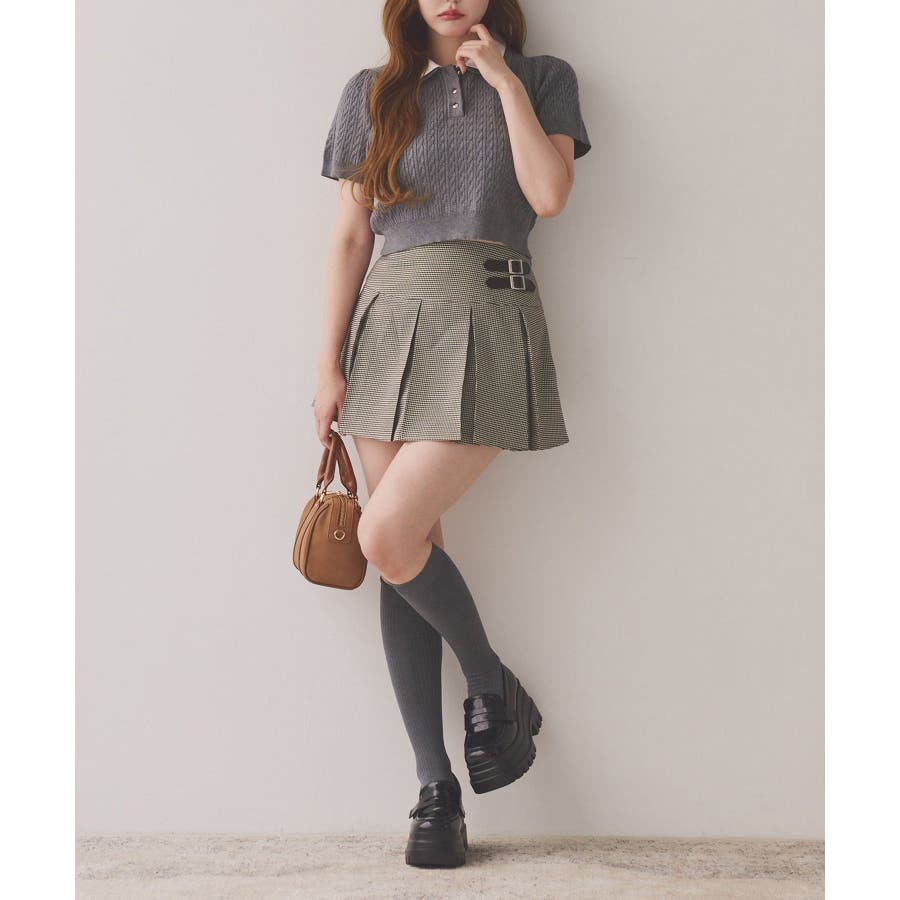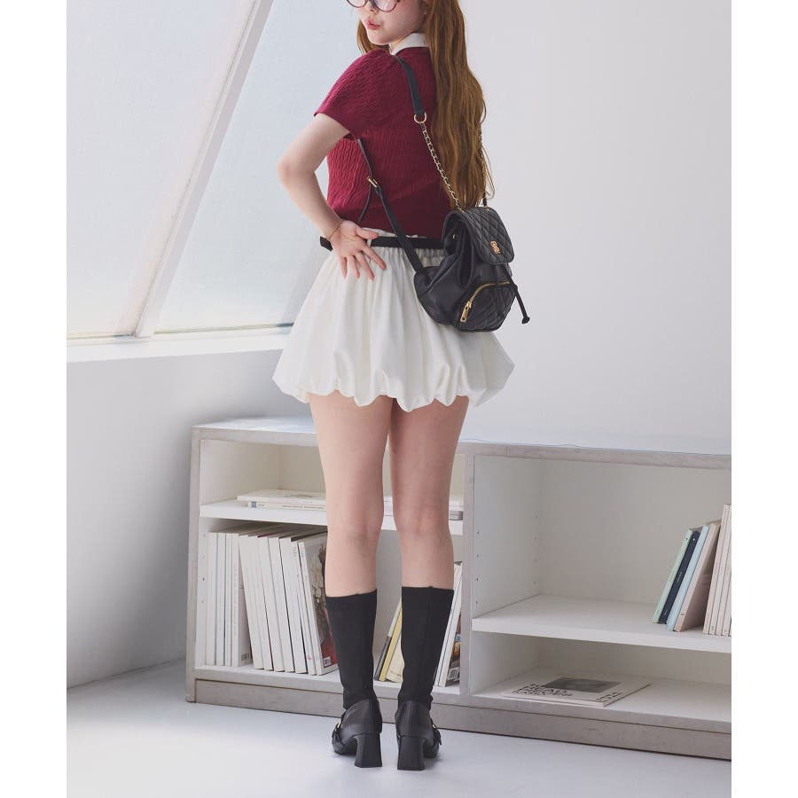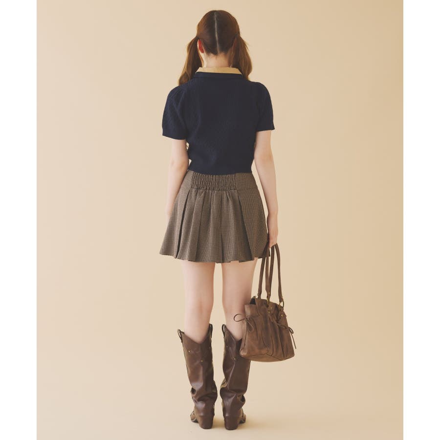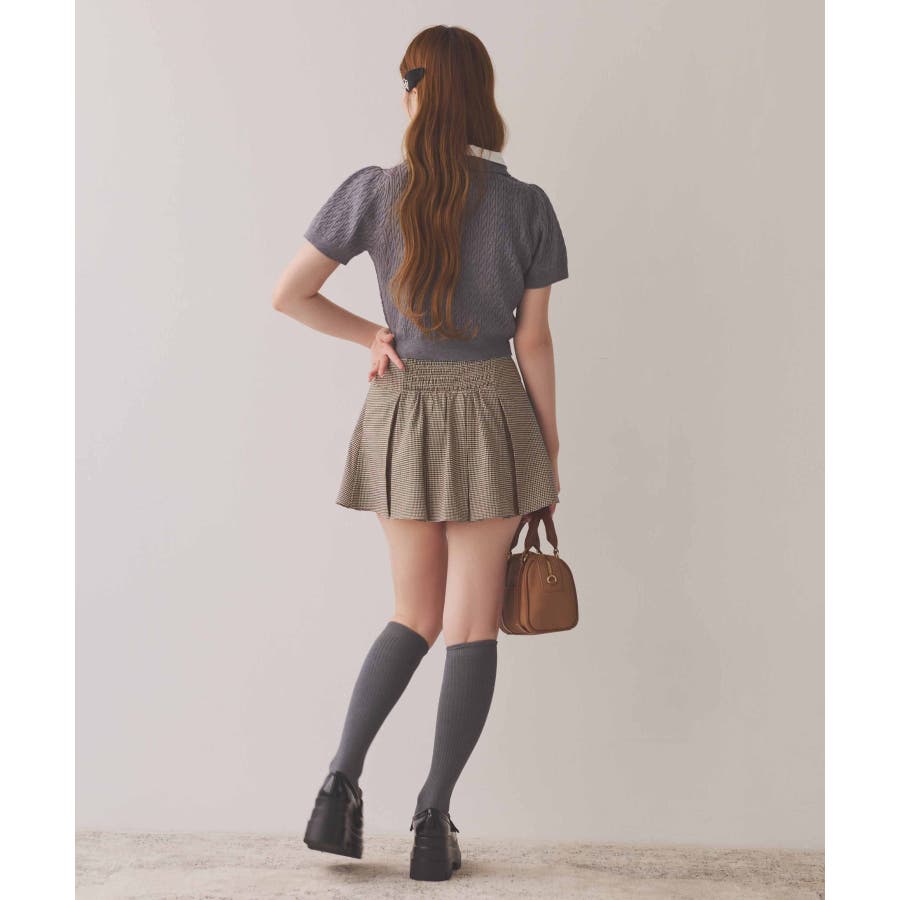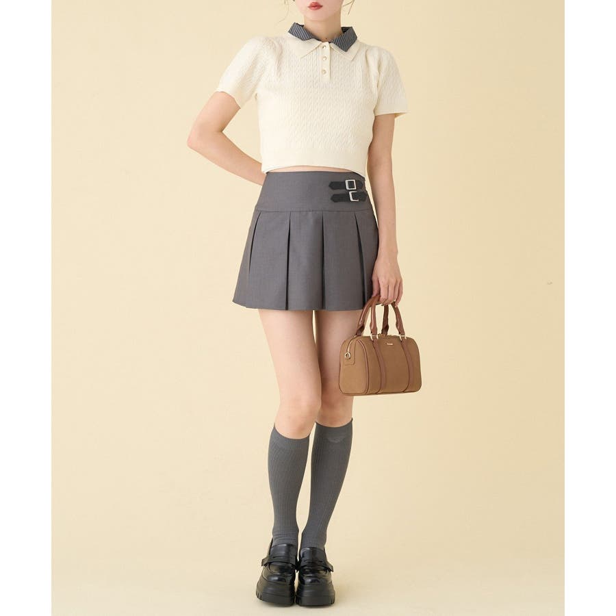 プリーツスカートなどのミニボトムでの合わせがオススメ。