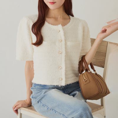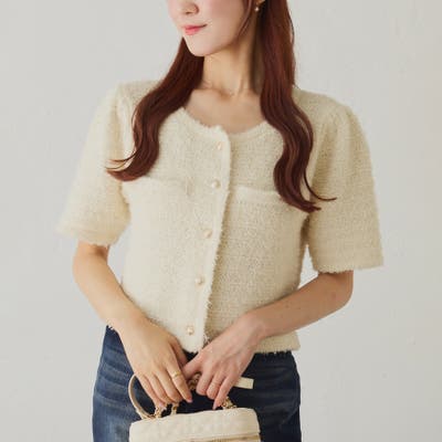 【one after another】ゴールドボタン半袖ツイード風カーディガン