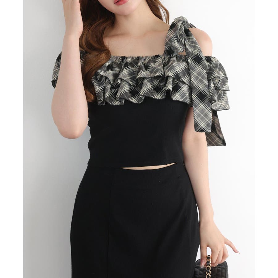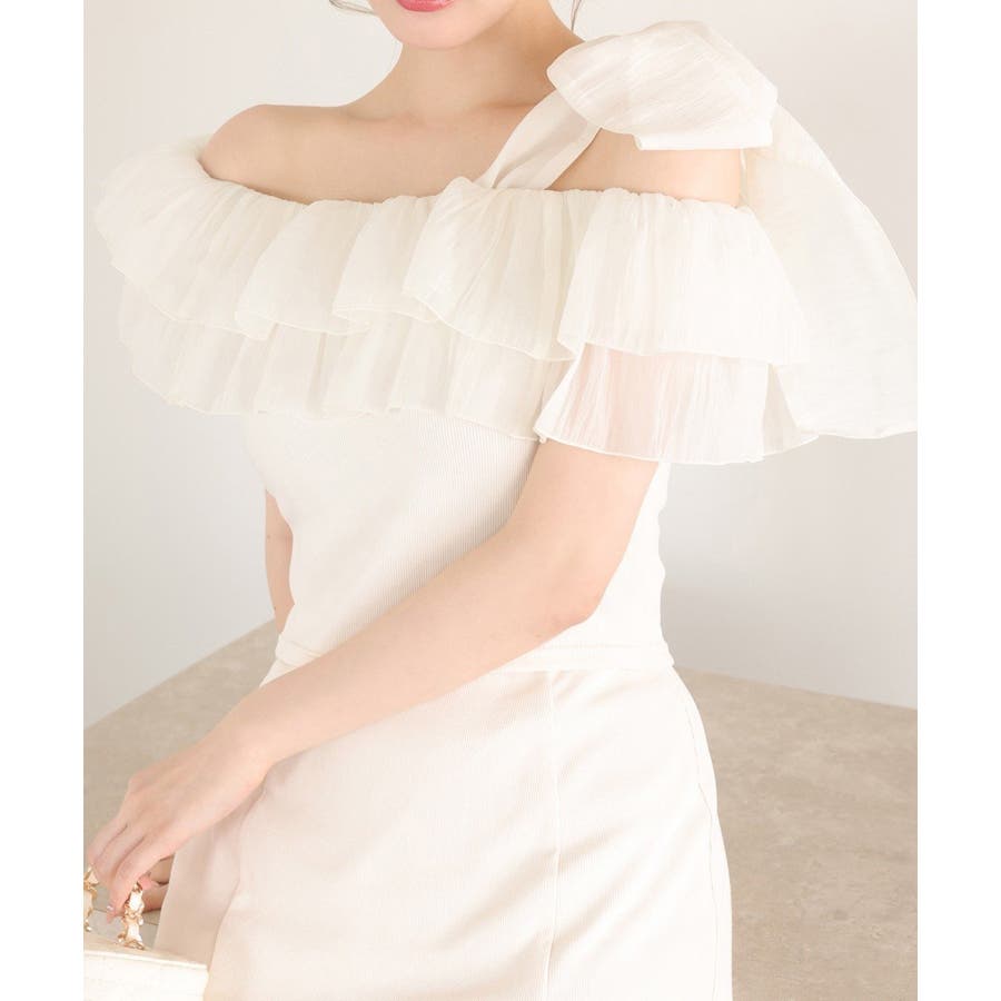 ワンショルダーのシルエットに、たっぷりのフリルと大きめリボンをあしらった主役級トップス。