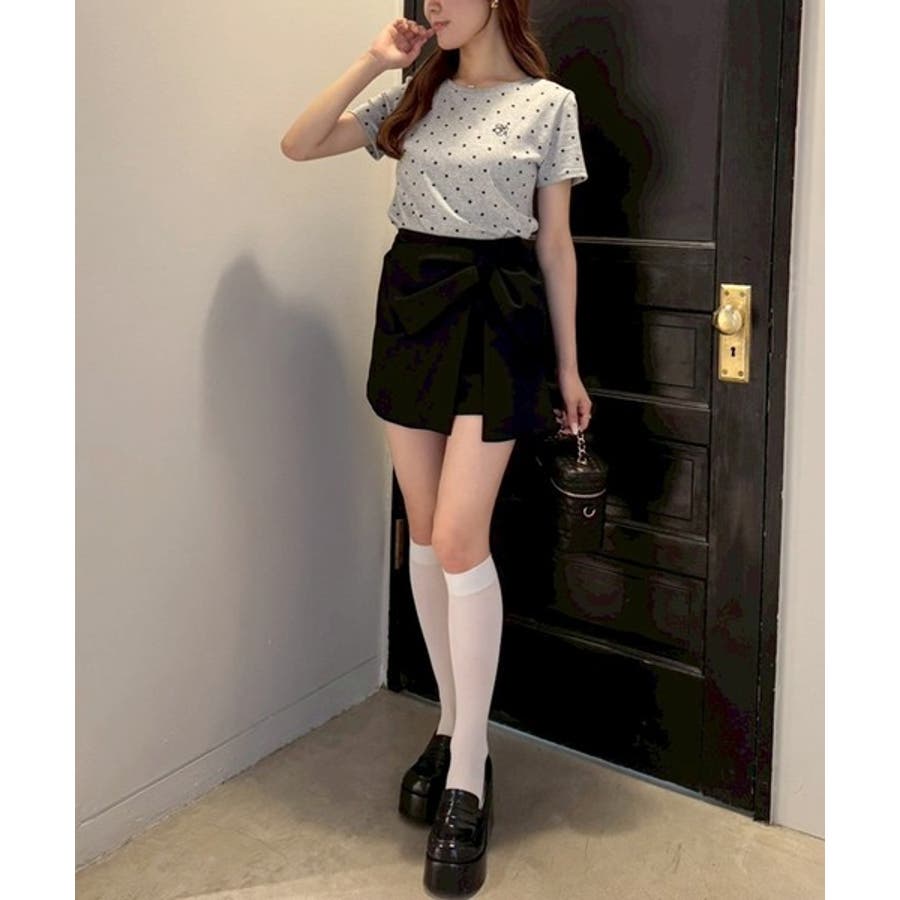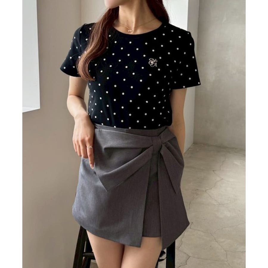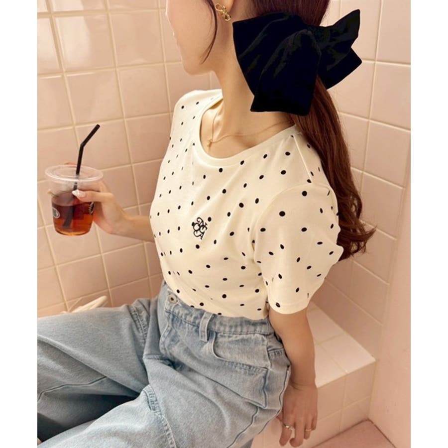 カジュアルになりがちなTシャツも、フェミニンな雰囲気に仕上がるドット柄で、