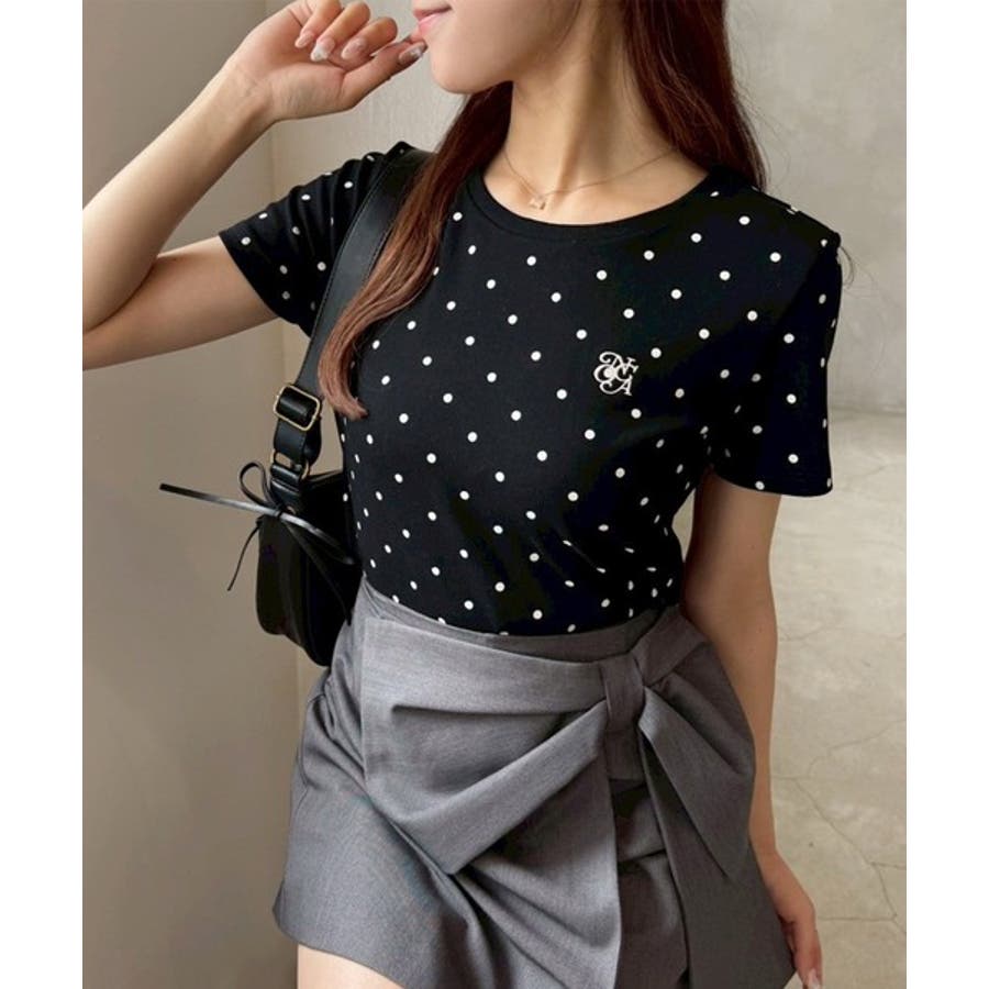 ガーリーなドット柄と胸元のロゴ刺繍をプラスした1枚。