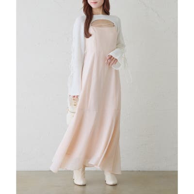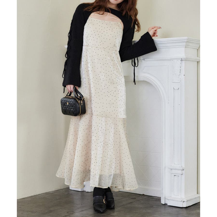 ・女性らしいマーメイドシルエットが魅力のキャミワンピースに、前後2WAYで着られるカーディガンがセットになったアイテム。