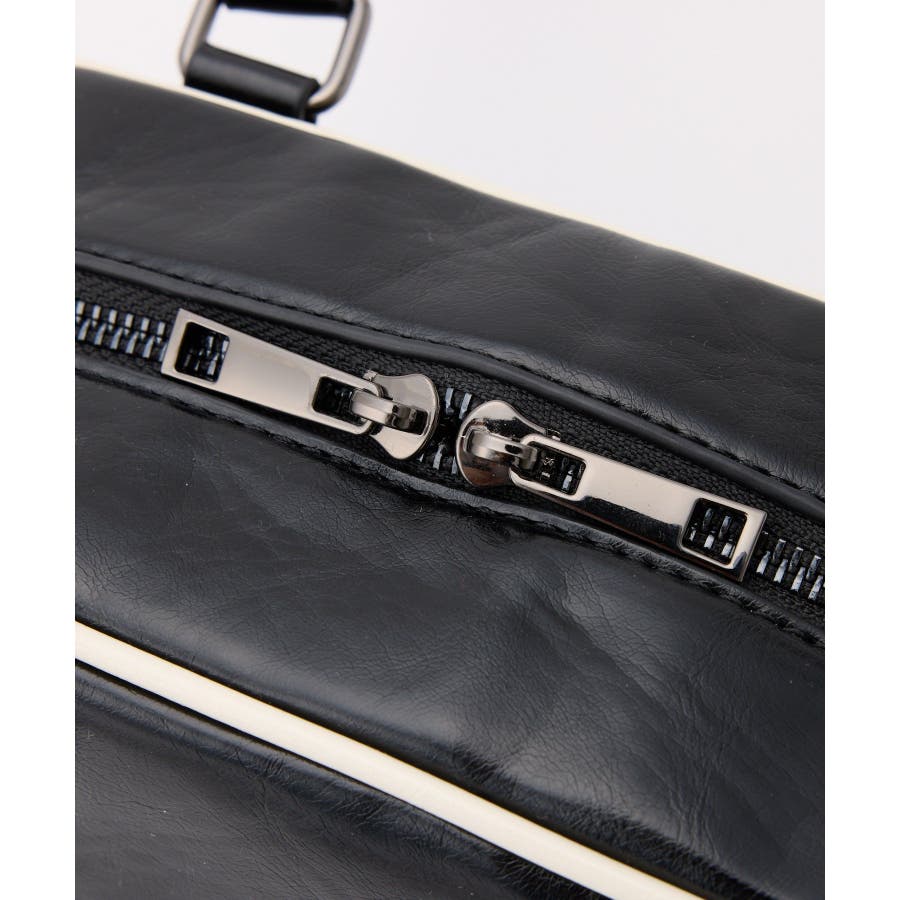 肩掛けしやすい長めのストラップに、アクセントになるオリジナルロゴデザインが目を惹くスクエアボストンバッグ。