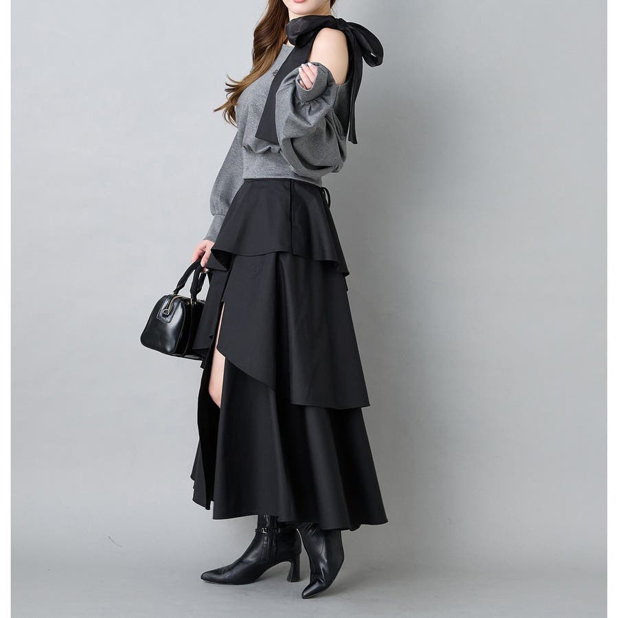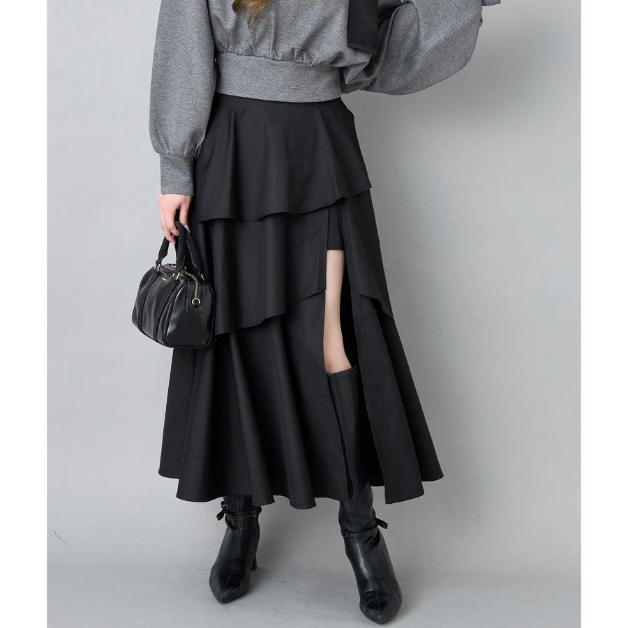 ふんわりとしたティアードシルエットに、フロントスリットをプラスした大人可愛いロングスカート。