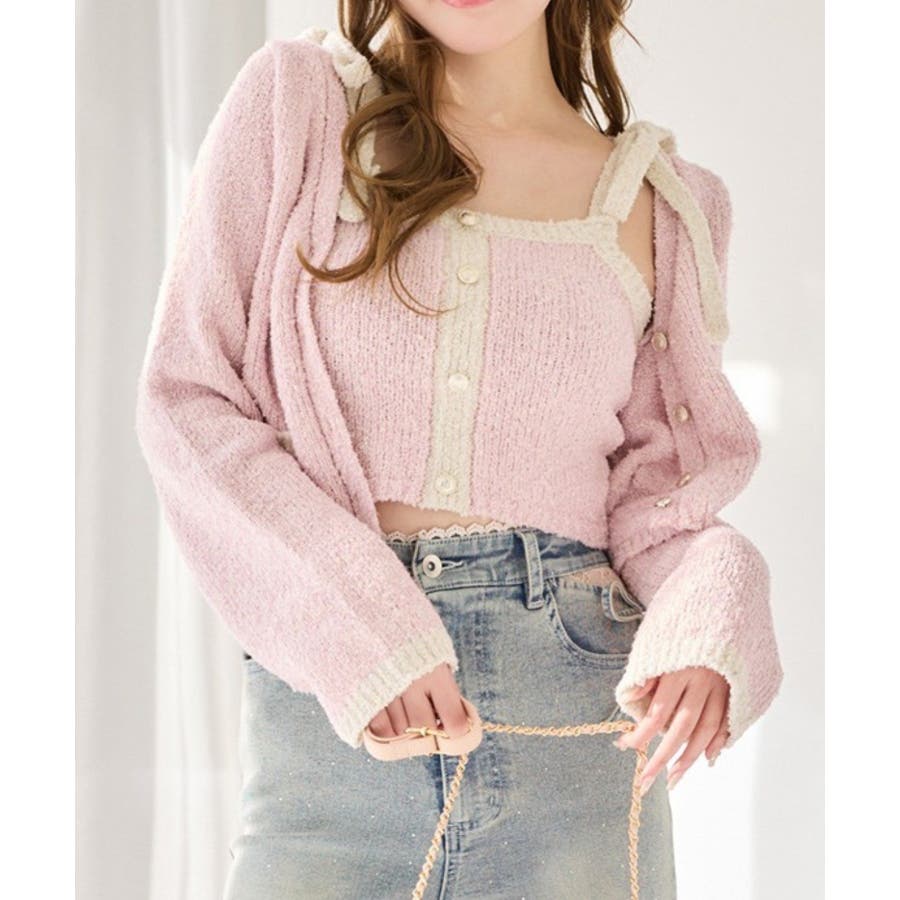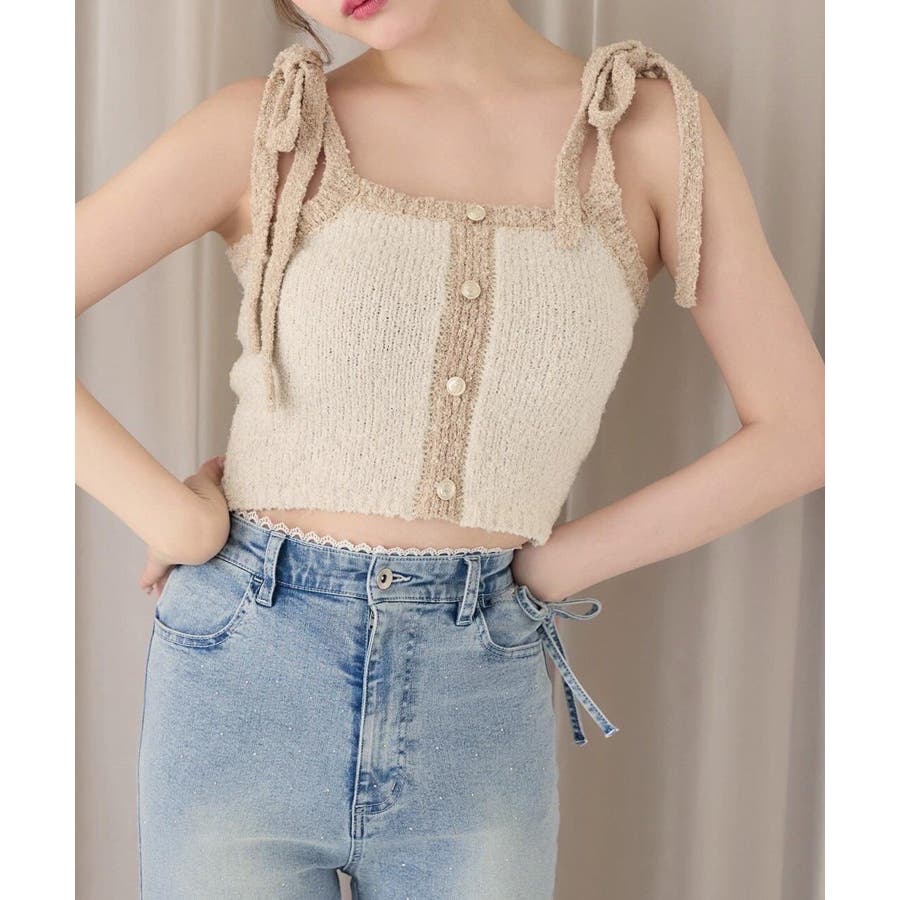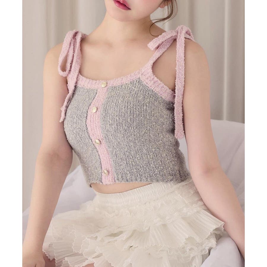 【one after another】【セットアップ可能】肩リボン配色ビスチェ
