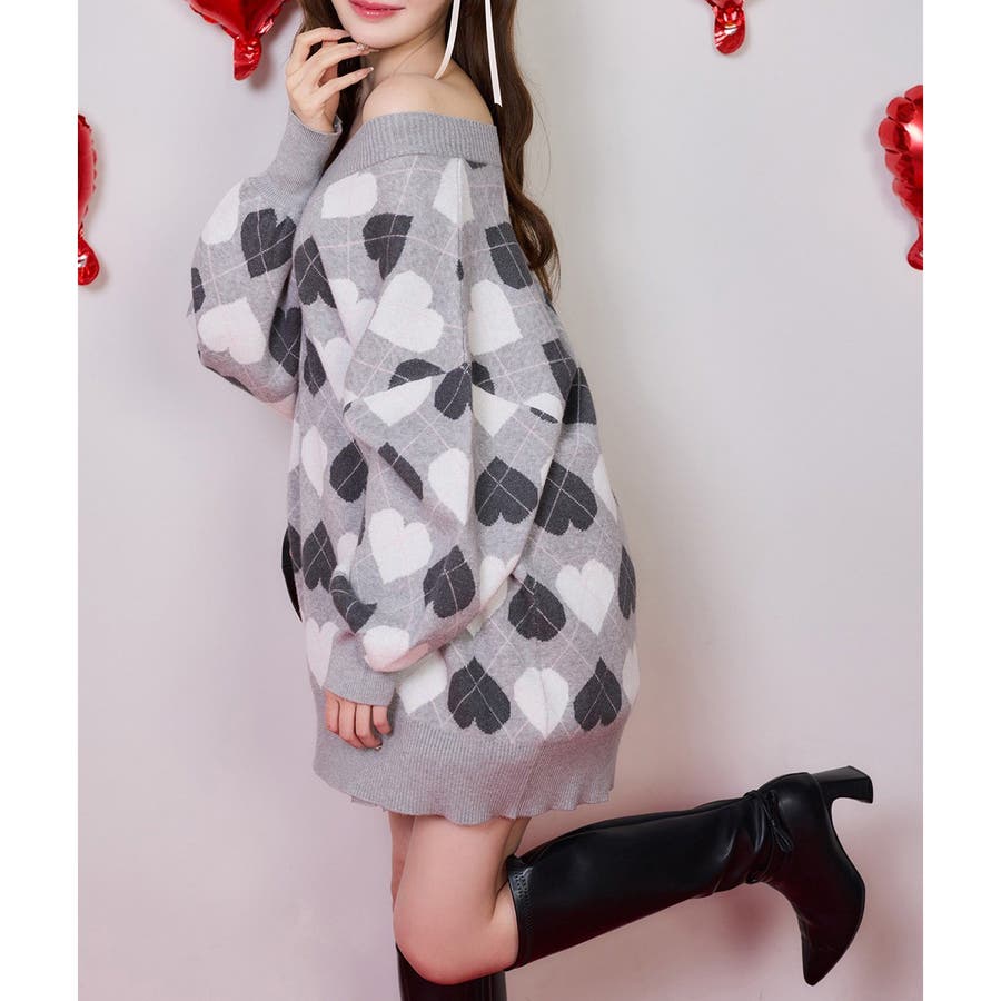 【one after another】ハートアーガイルニットミニワンピ