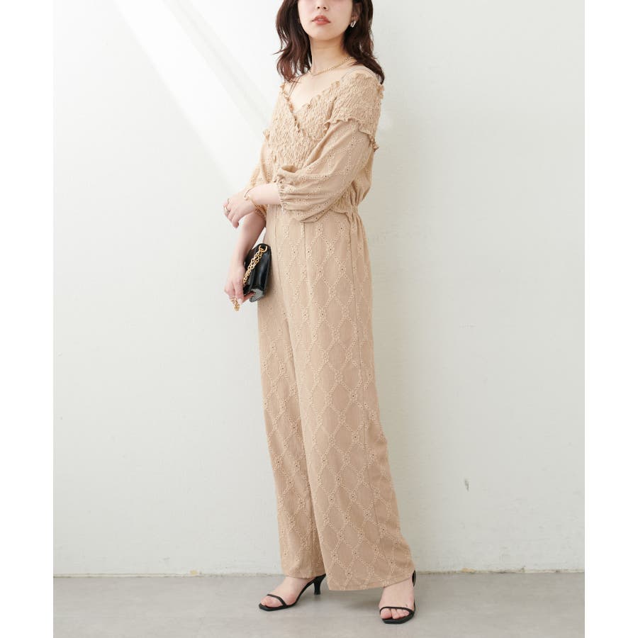 【natural couture】カットレースフロントクロスサロペ
