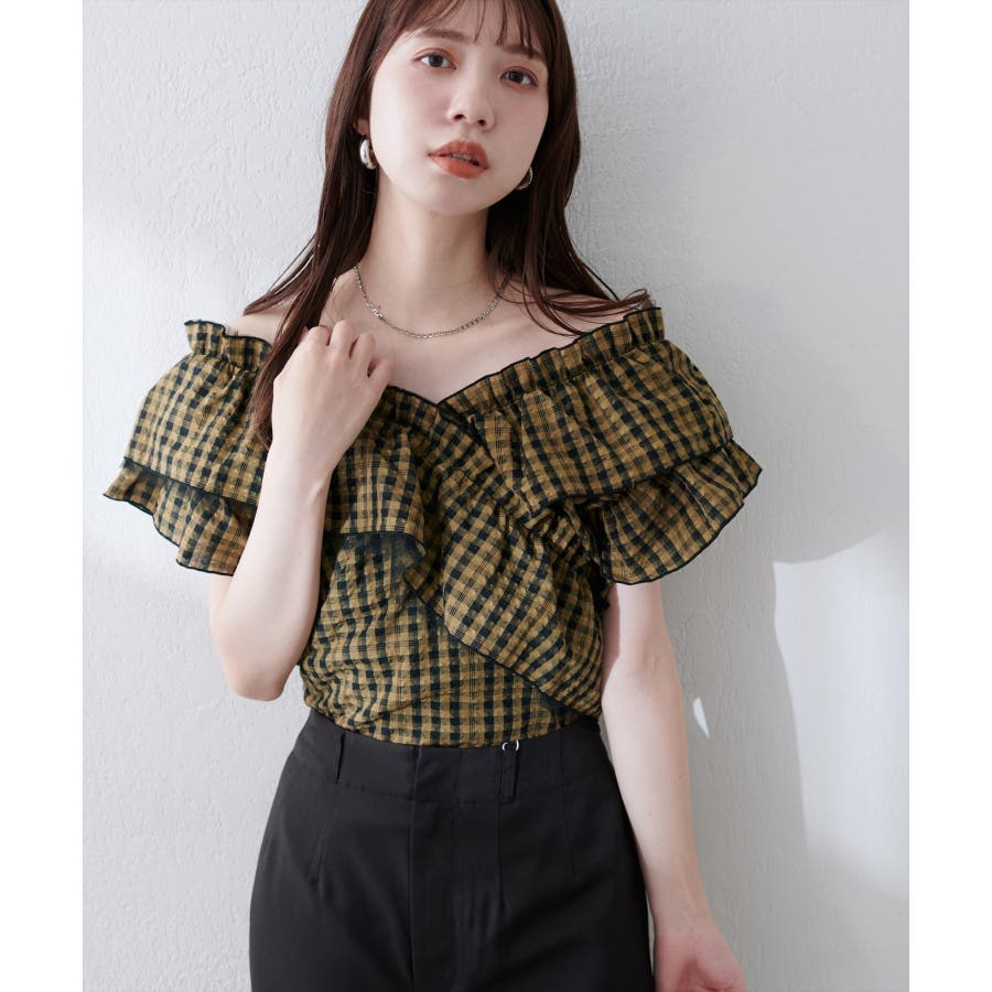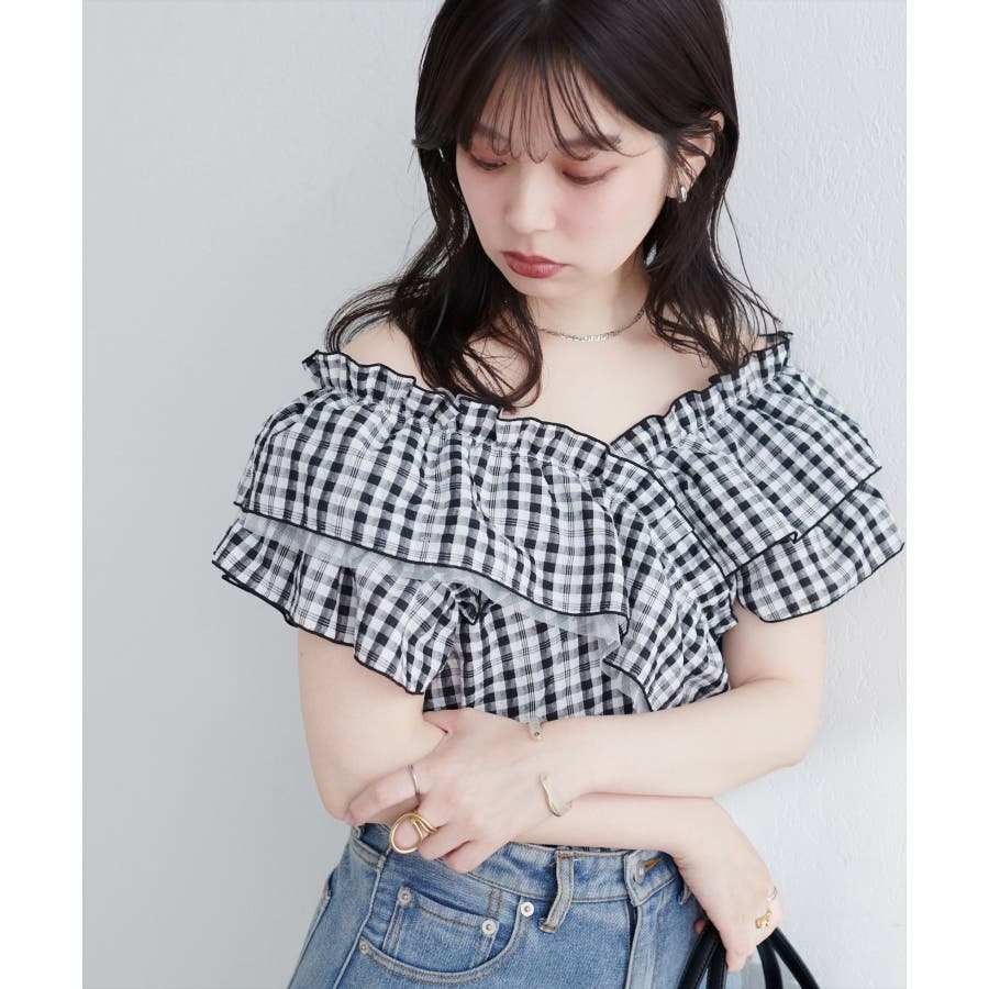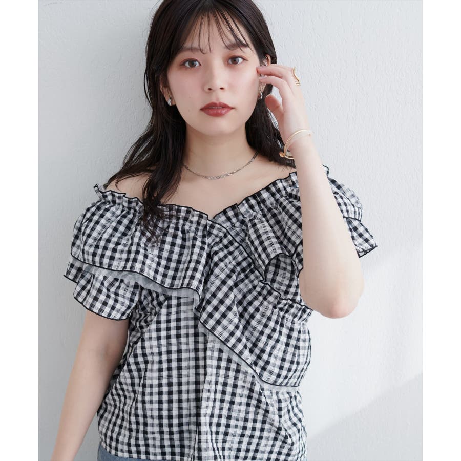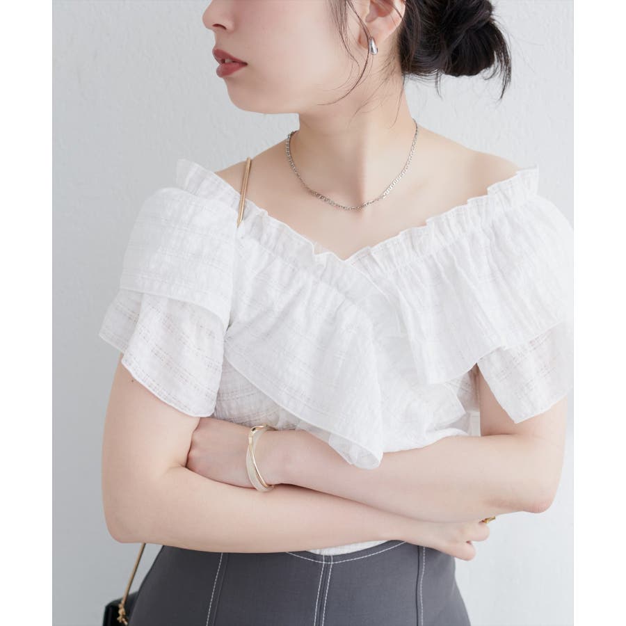 【natural couture】2WAYランダムフリルオフショルブラウス
