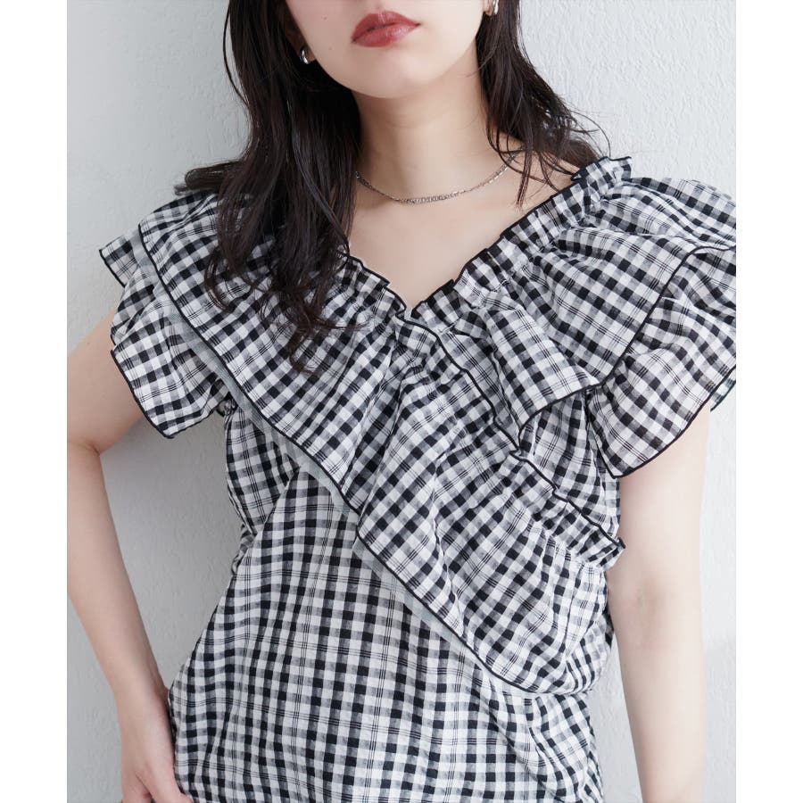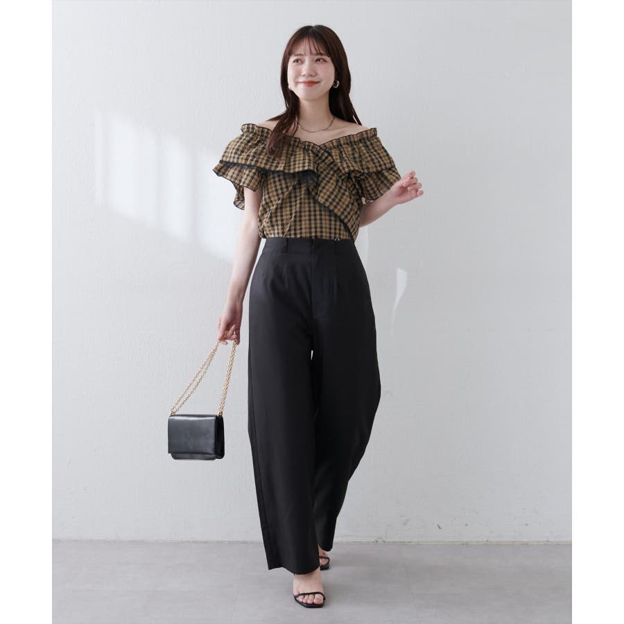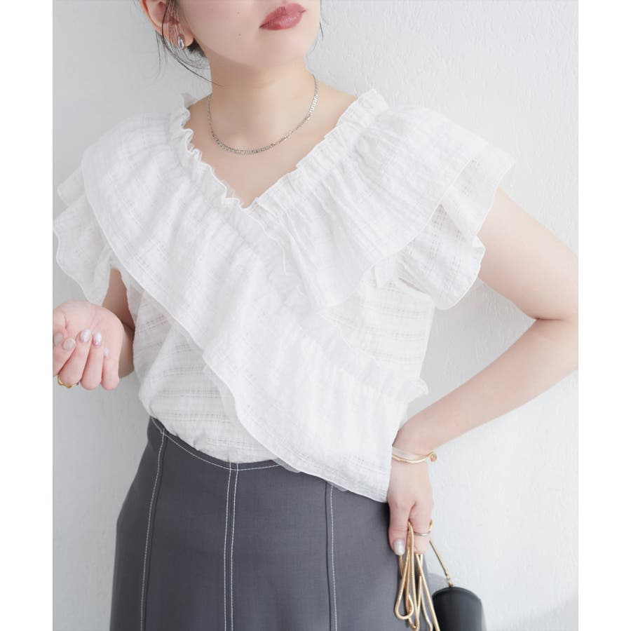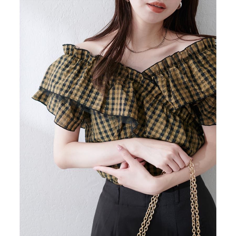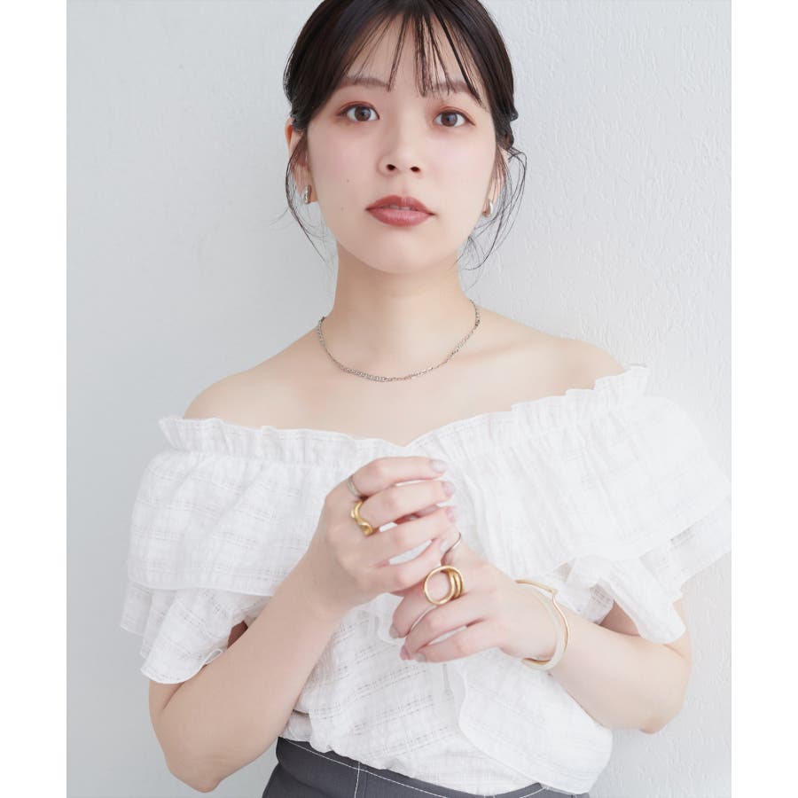 【natural couture】2WAYランダムフリルオフショルブラウス