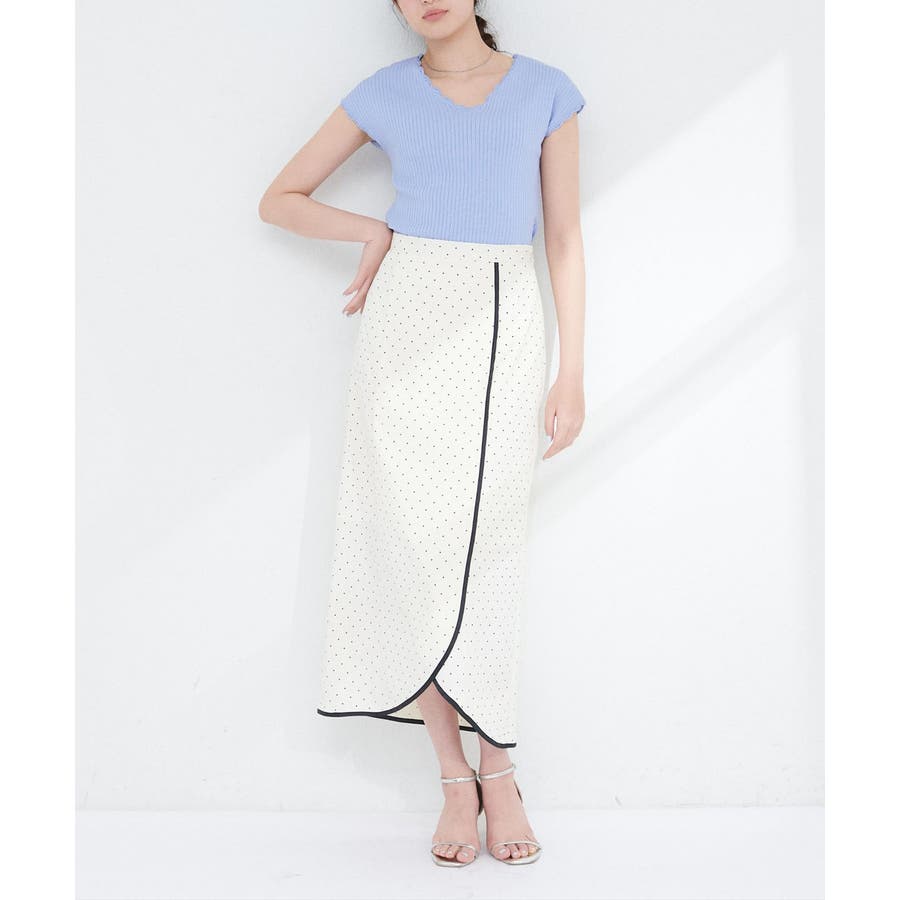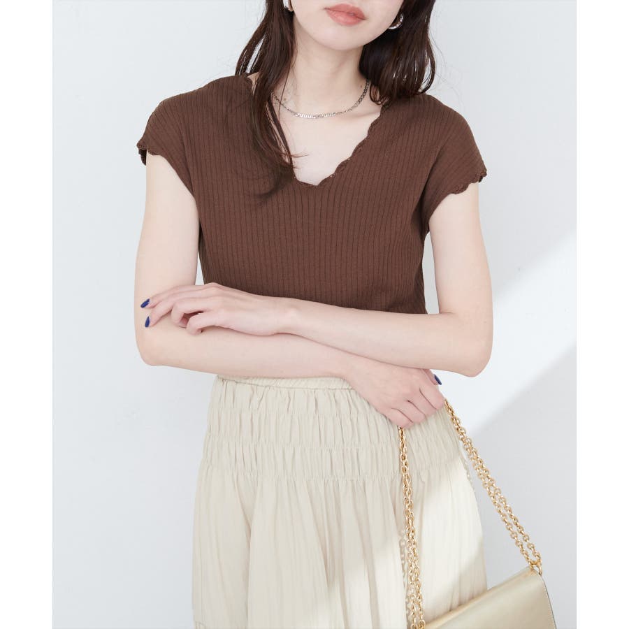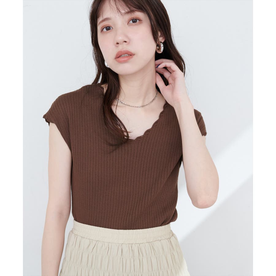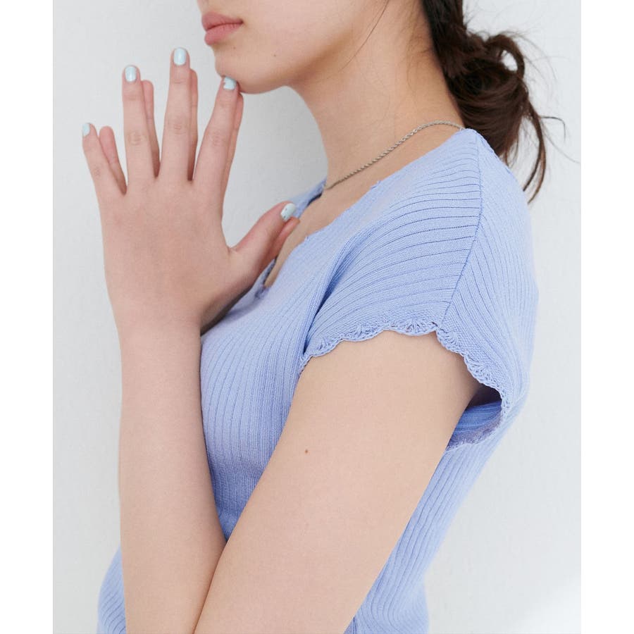 【natural couture】かぎ針風ちびスカラップフレンチリブニット