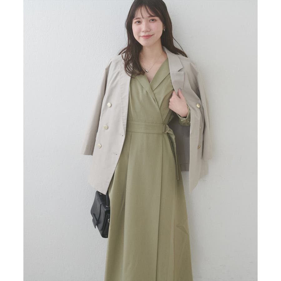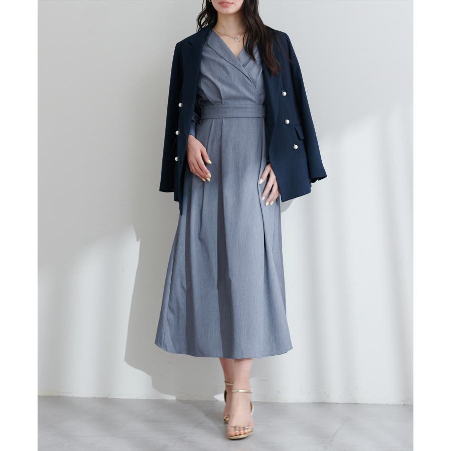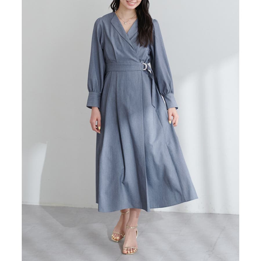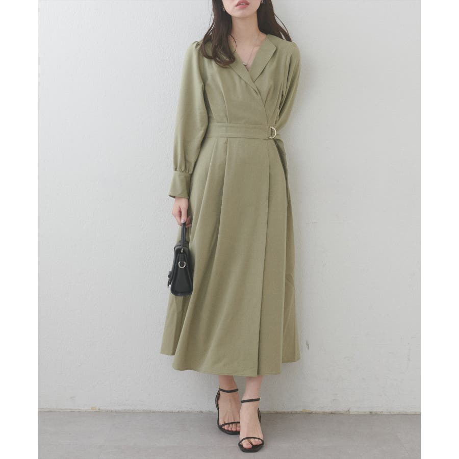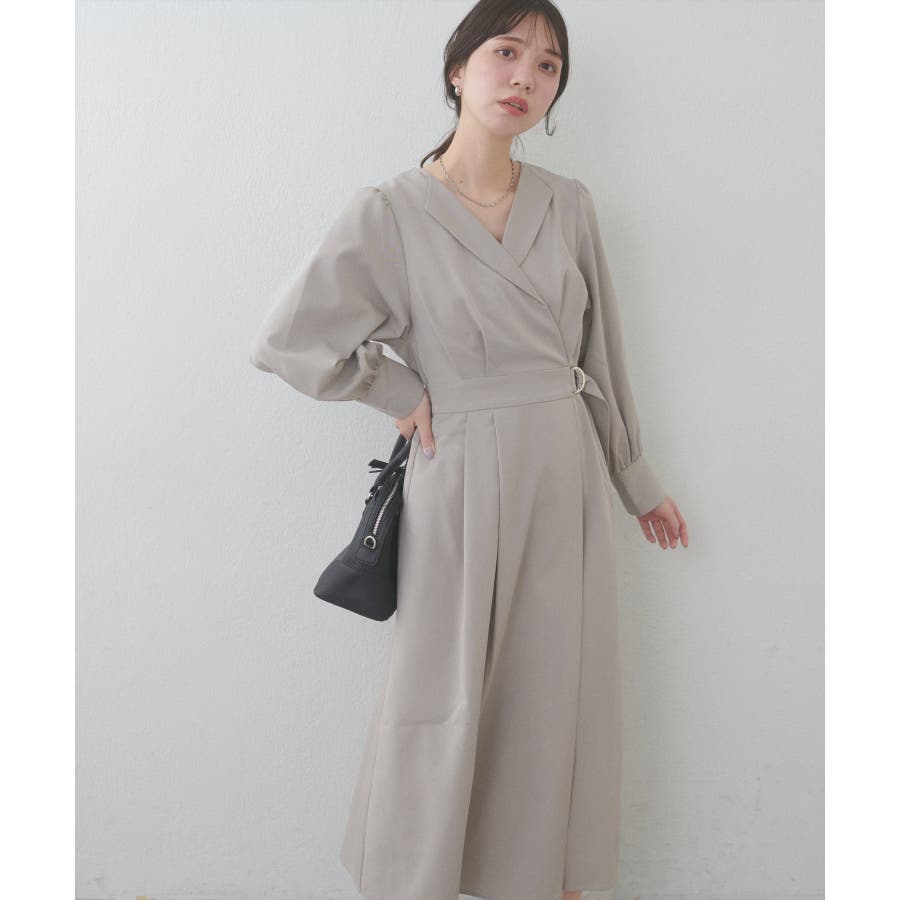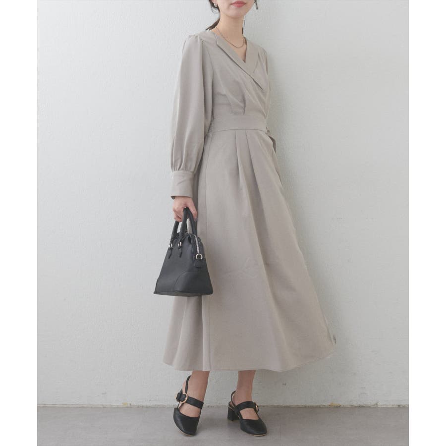 まるでガウンのようなオープンネックが大人の余裕を漂わせるレディワンピース。