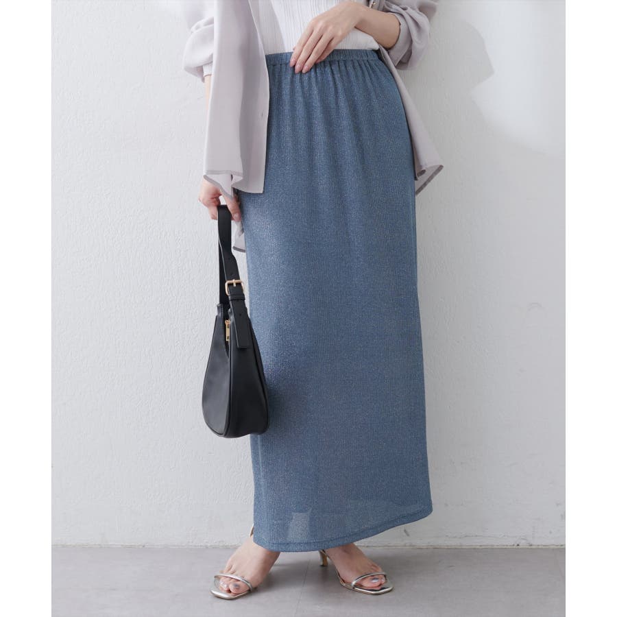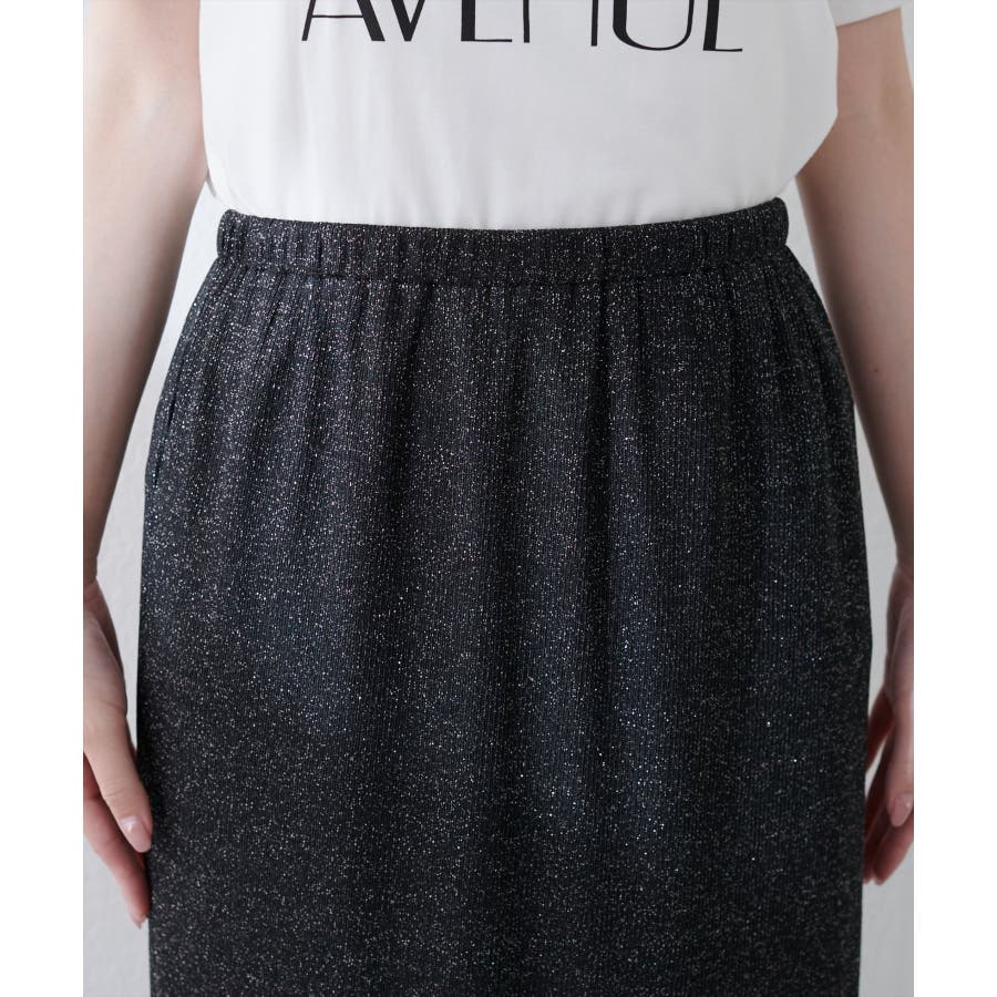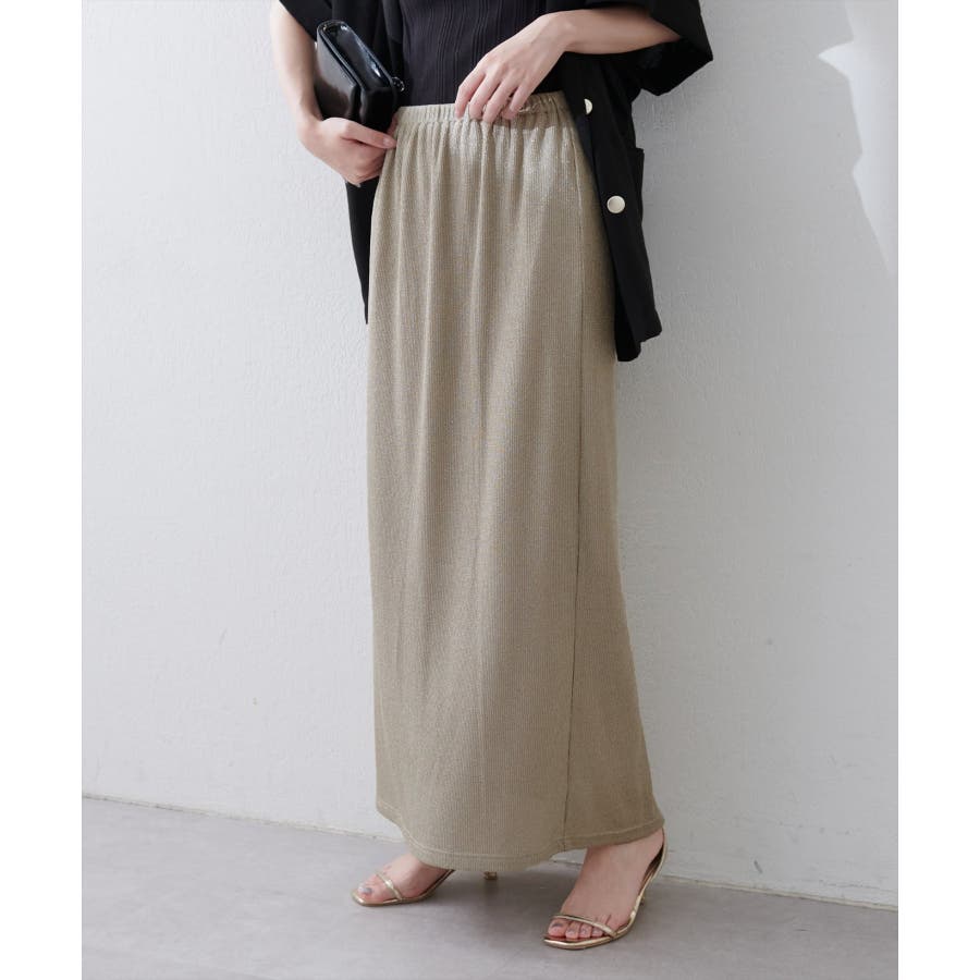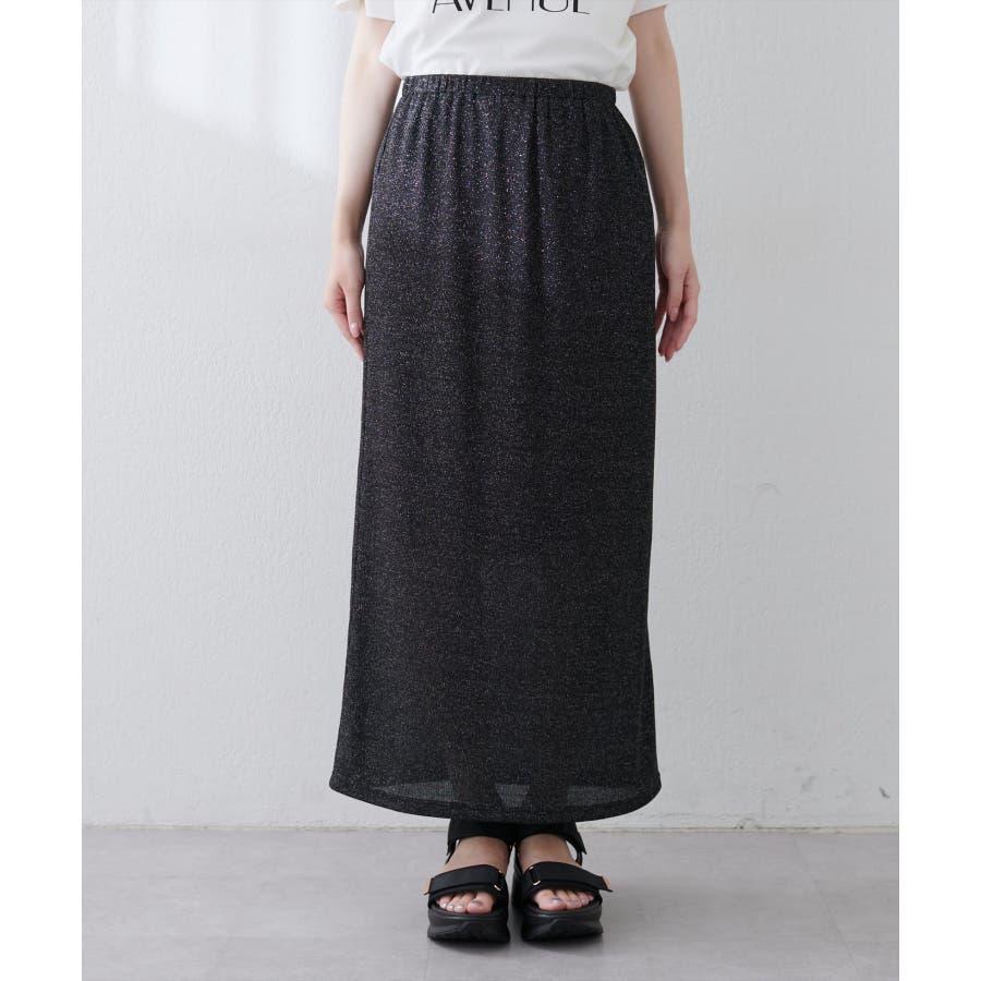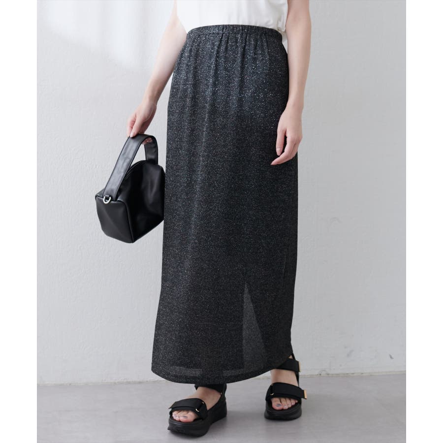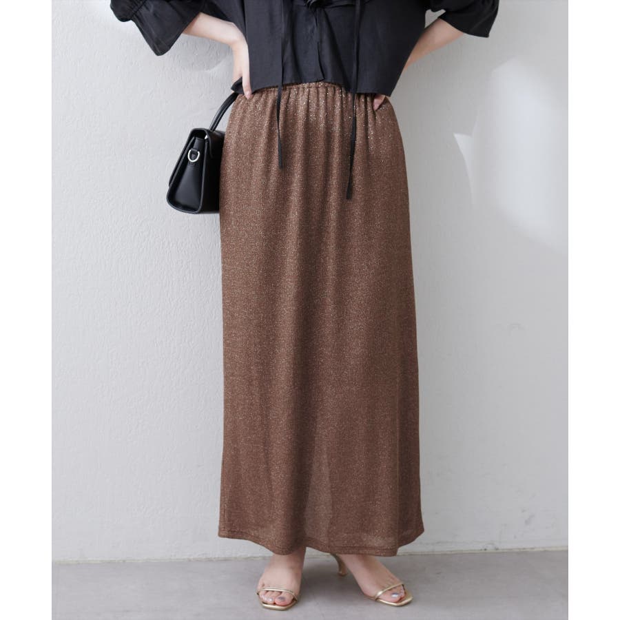 繊細なラメが上品な華やぎを添える、リラックス感のある上品スカート。