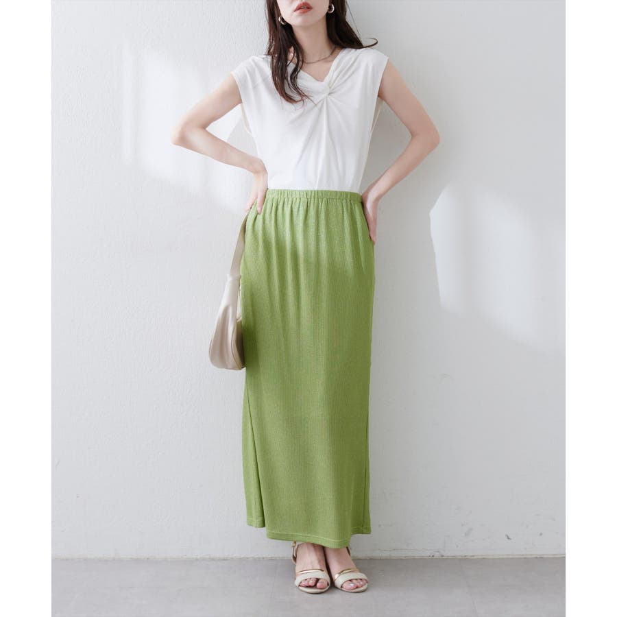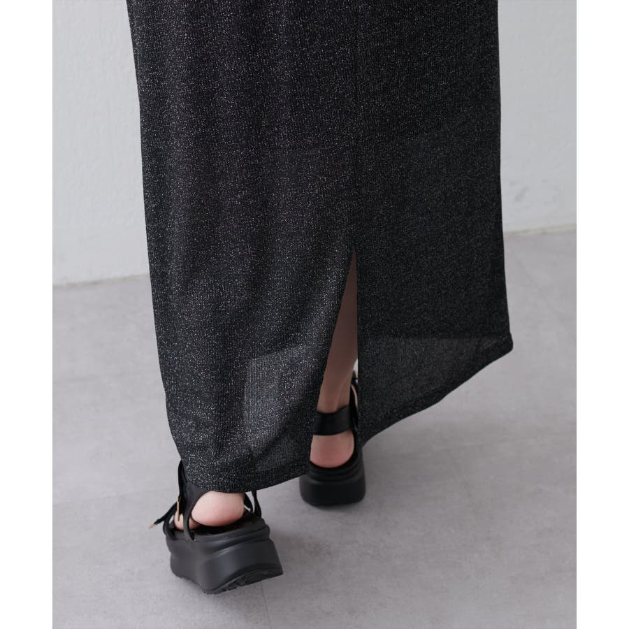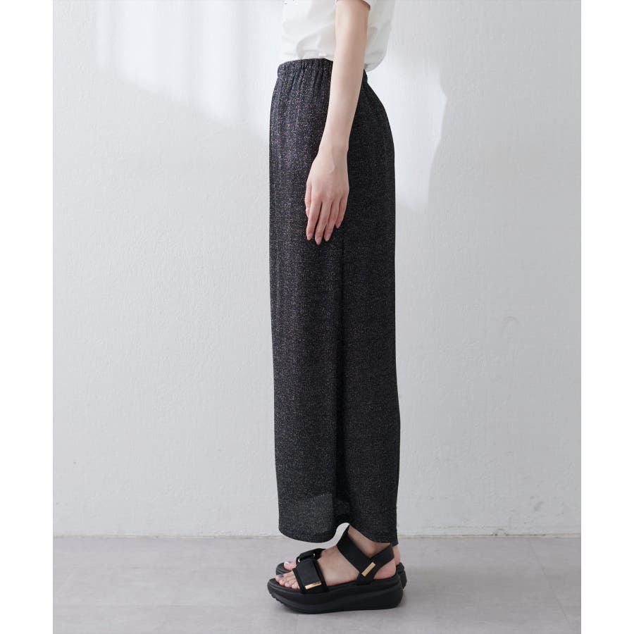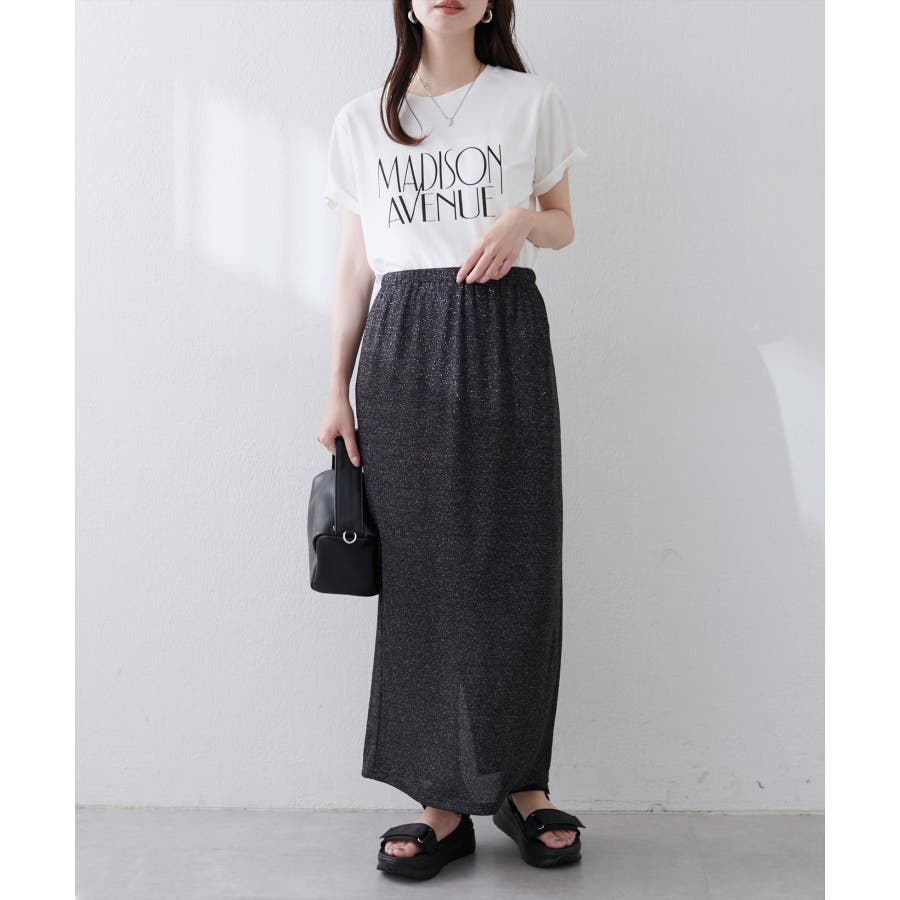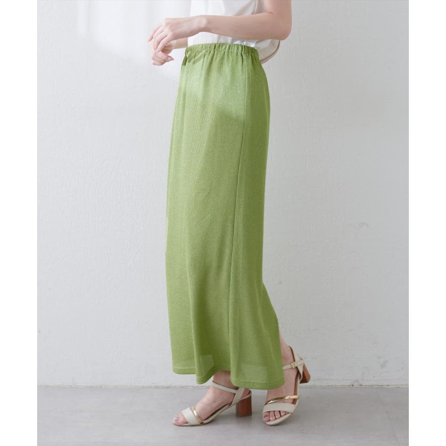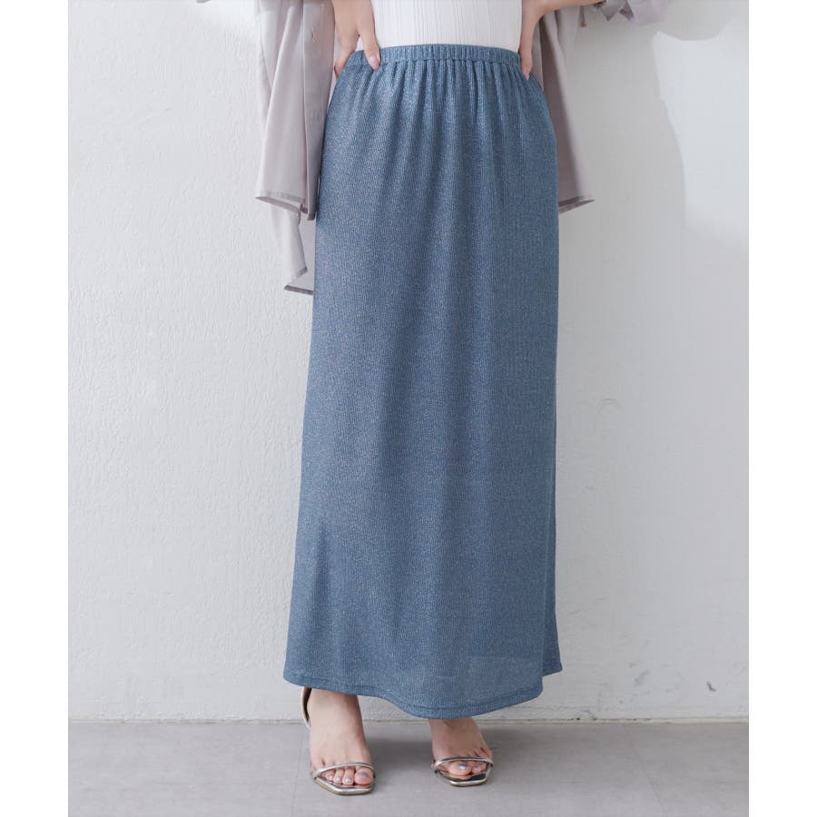 繊細なラメが上品な華やぎを添える、リラックス感のある上品スカート。