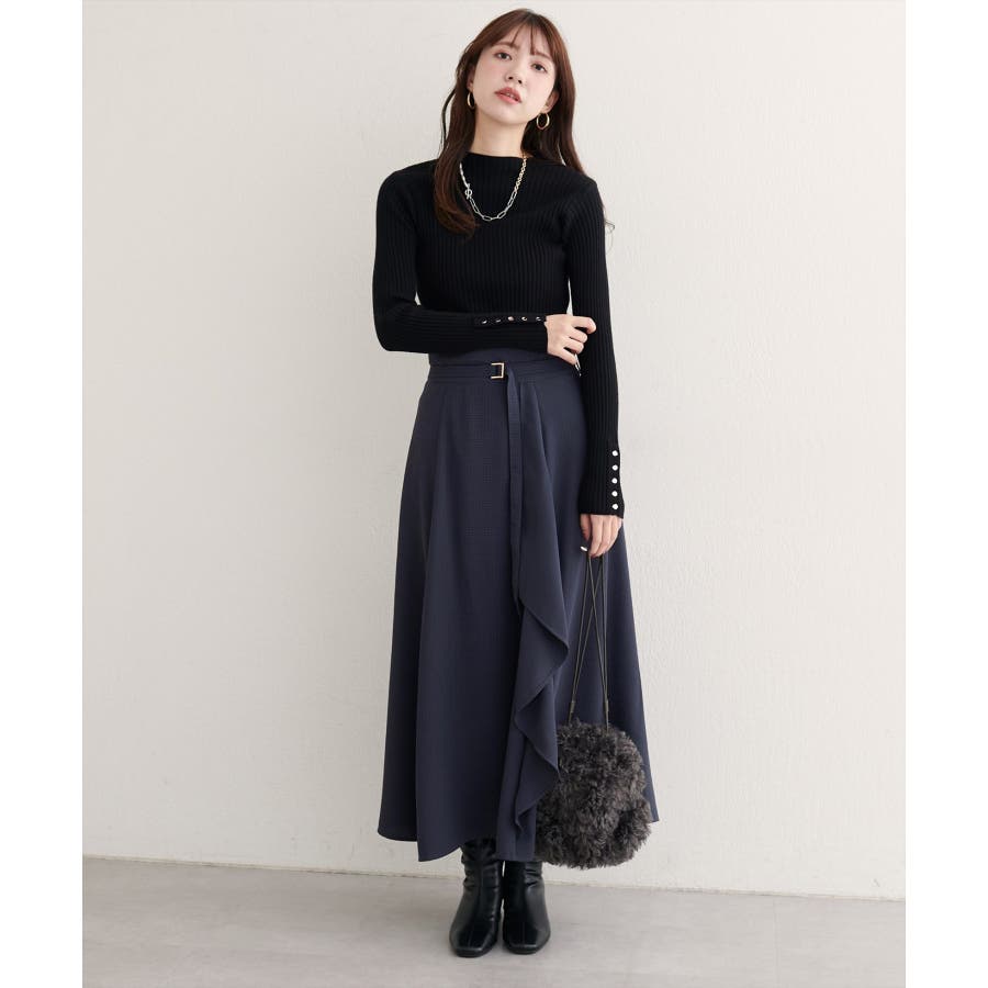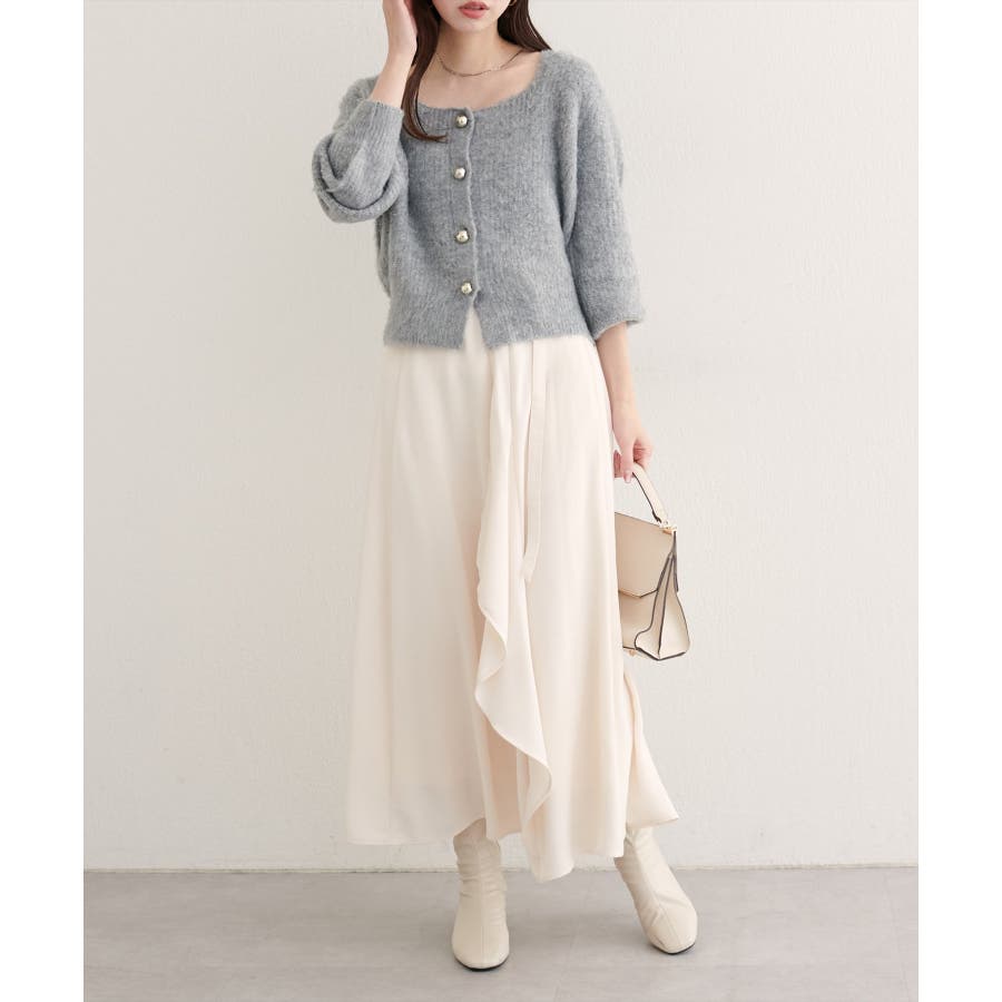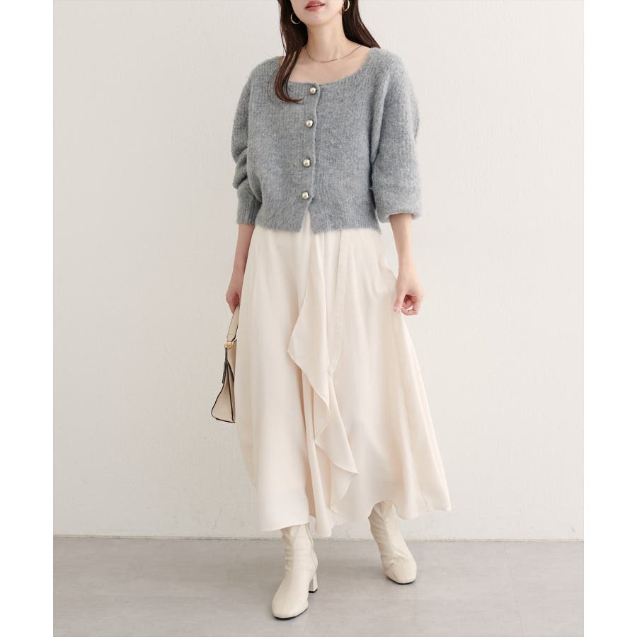歩くたびに揺れるラッフルが、上品な華やぎを添えるスカート。
