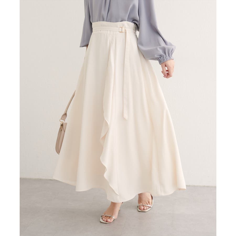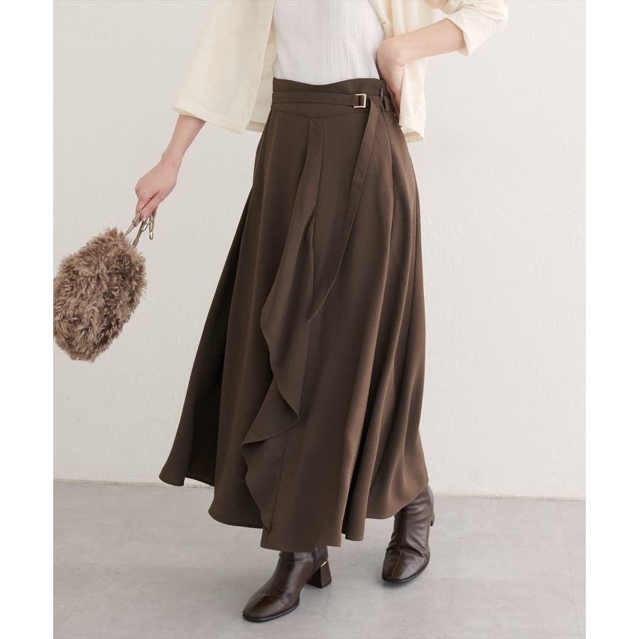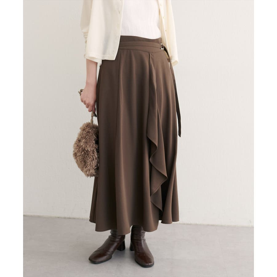【natural couture】ウエストベルト付きラッフルデザインスカート