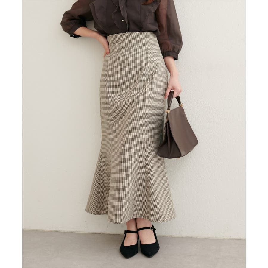ベージュ、スミクロの千鳥柄はハリのある生地感でより綺麗なシルエットです。
