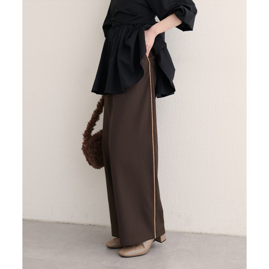 サイドにあしらわれた繊細なラインが魅力のパンツ。