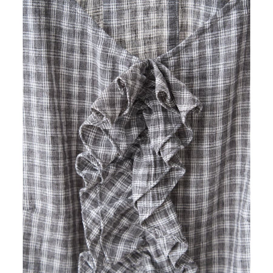 胸元にあしらわれたフリルは、動くたびに優雅な表情を見せ、着る人の魅力を引き立てます。