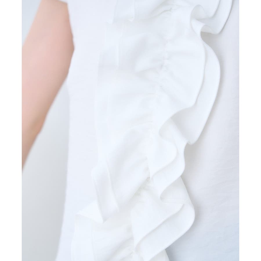 胸元を飾る繊細なフリルは、甘すぎない上品なアクセントとなり、周囲の視線を惹きつけます。