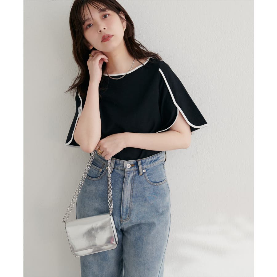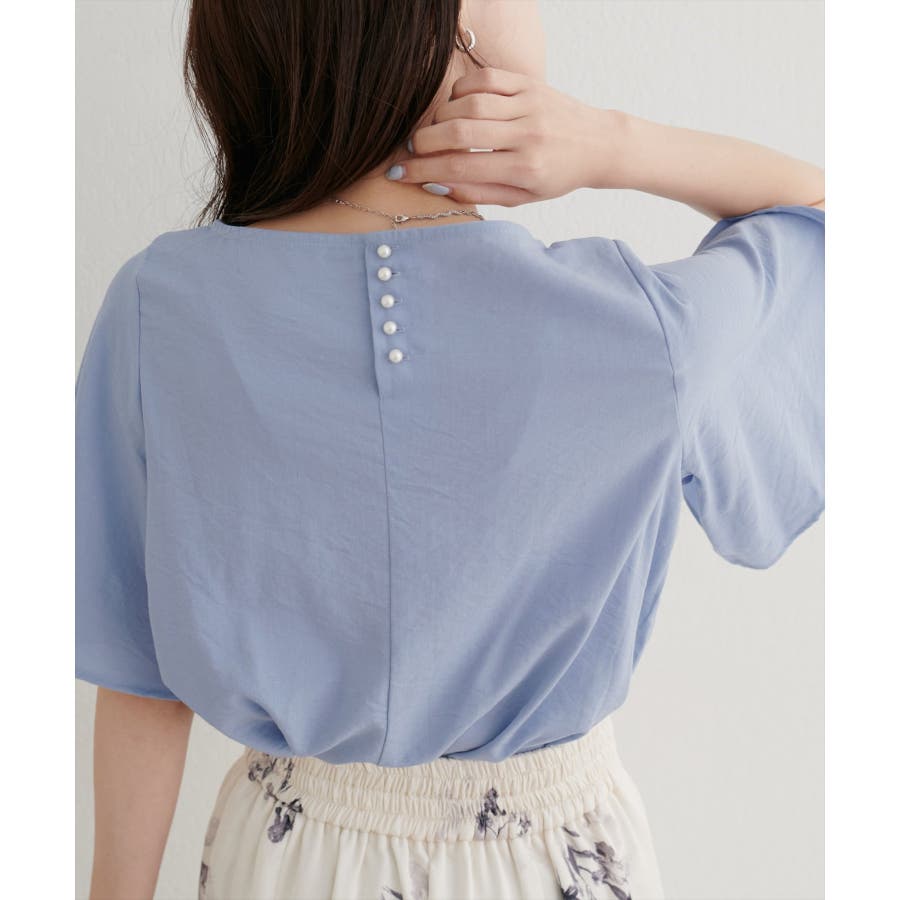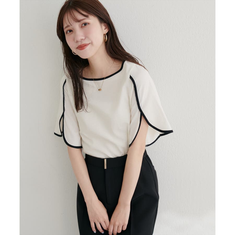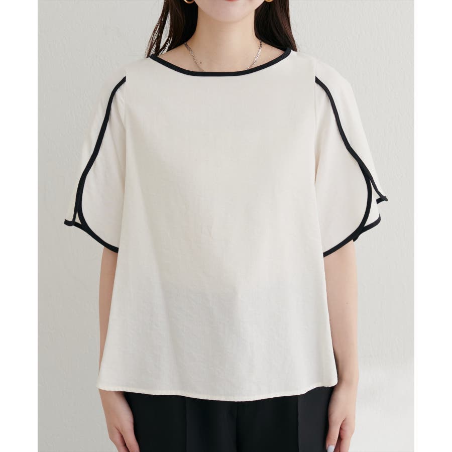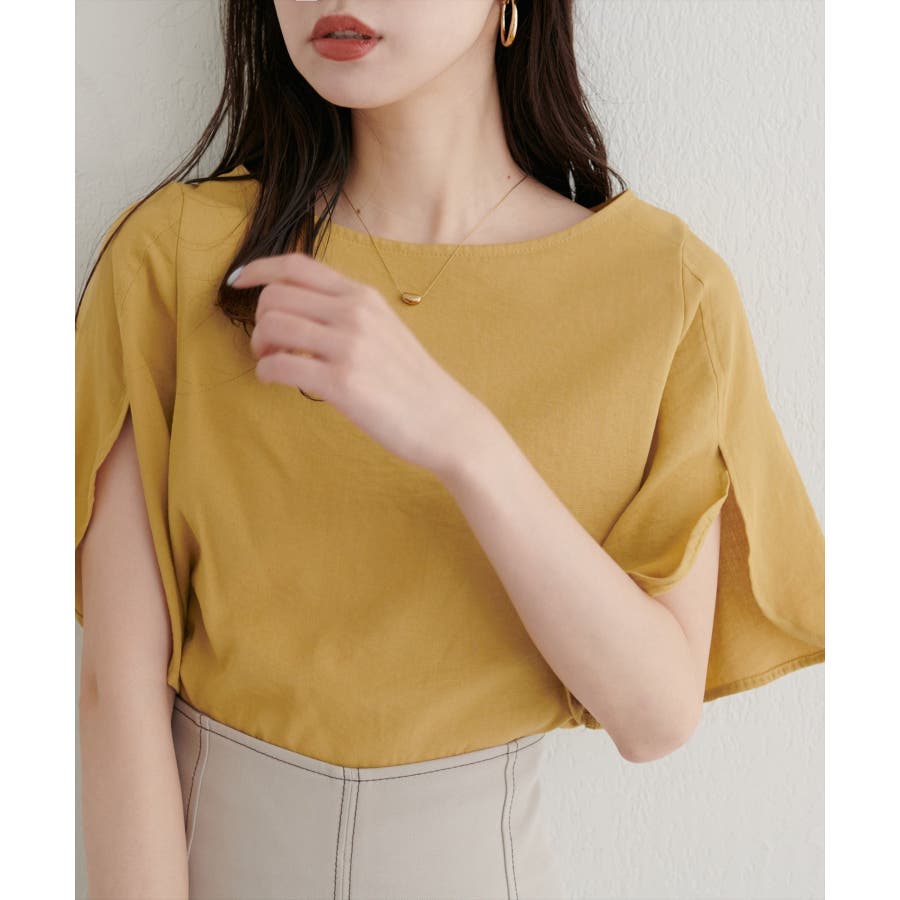 袖にハチワレのようなスリットを施した遊び心のある半袖ブラウス。