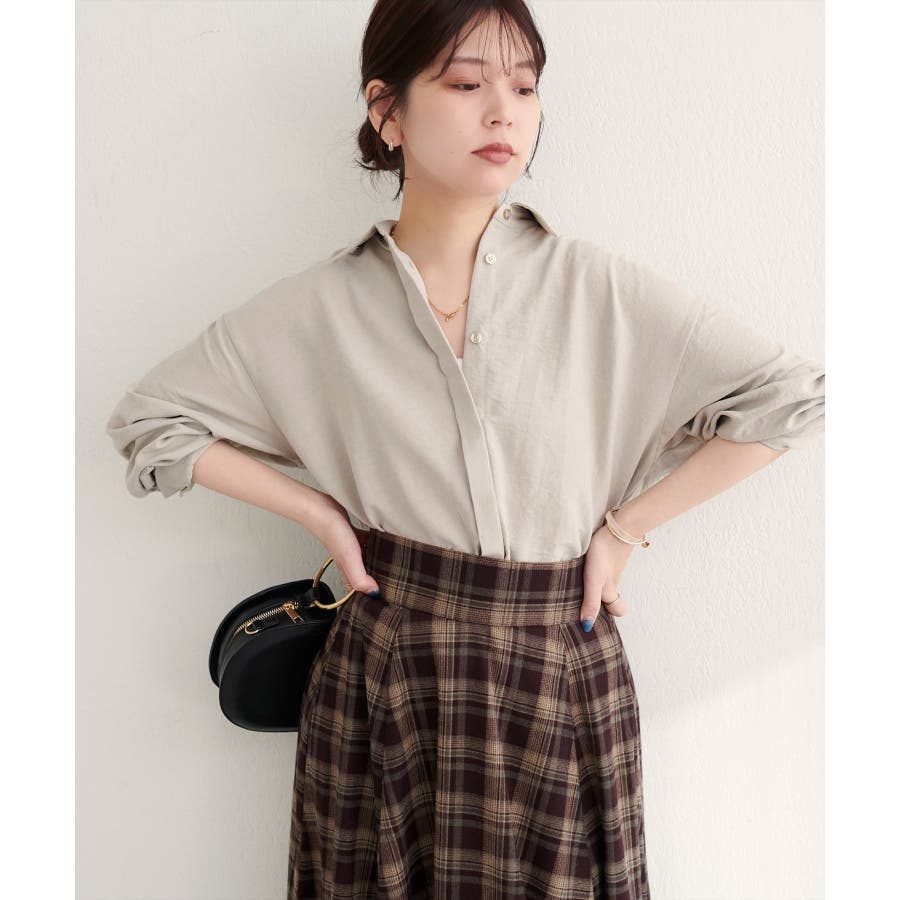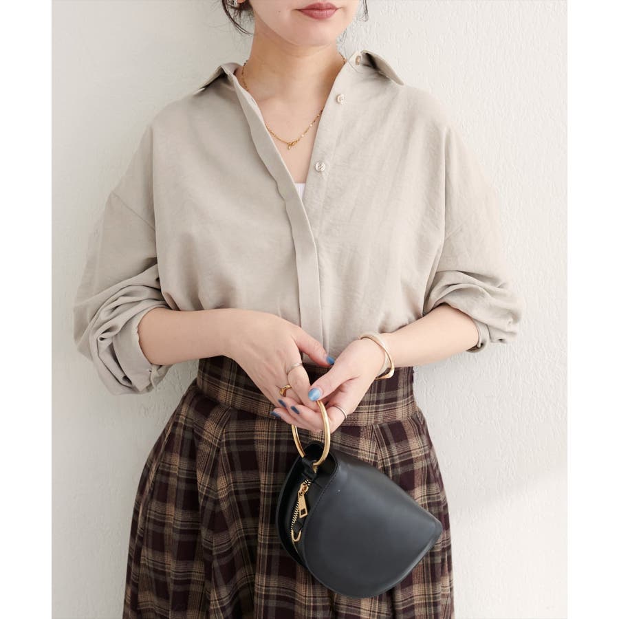 シンプルなシャツなので、ネックレスやスカーフなどのアクセサリーを合わせてもワンランク上コーデに◎
