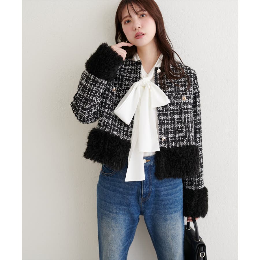 クラシカルなボウタイリボンが、洗練された大人の女性らしさを演出。