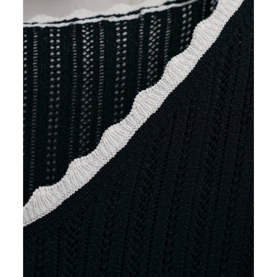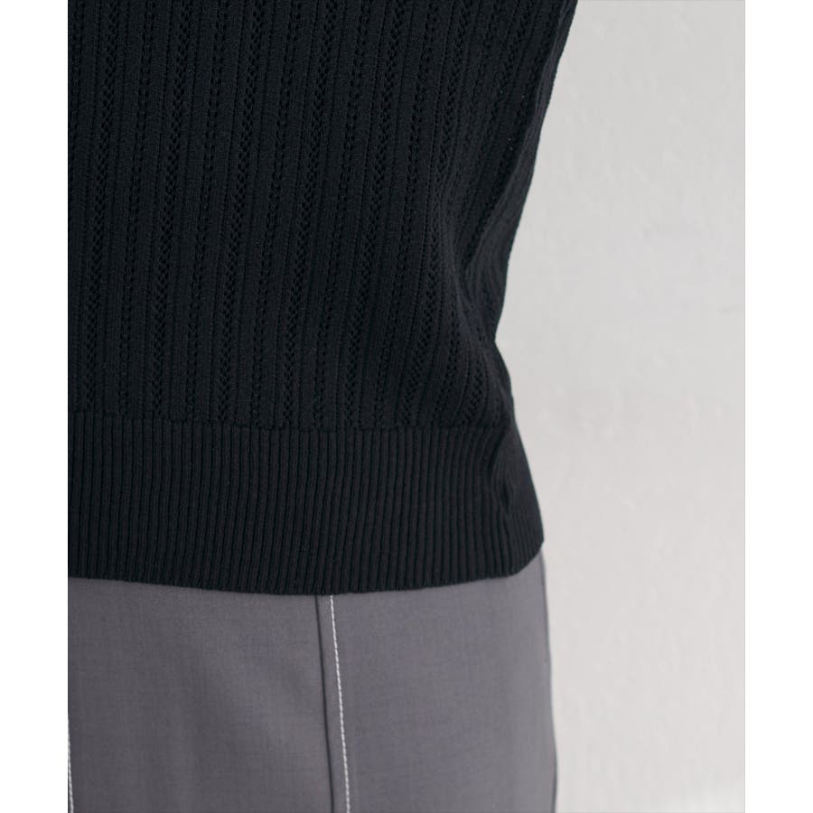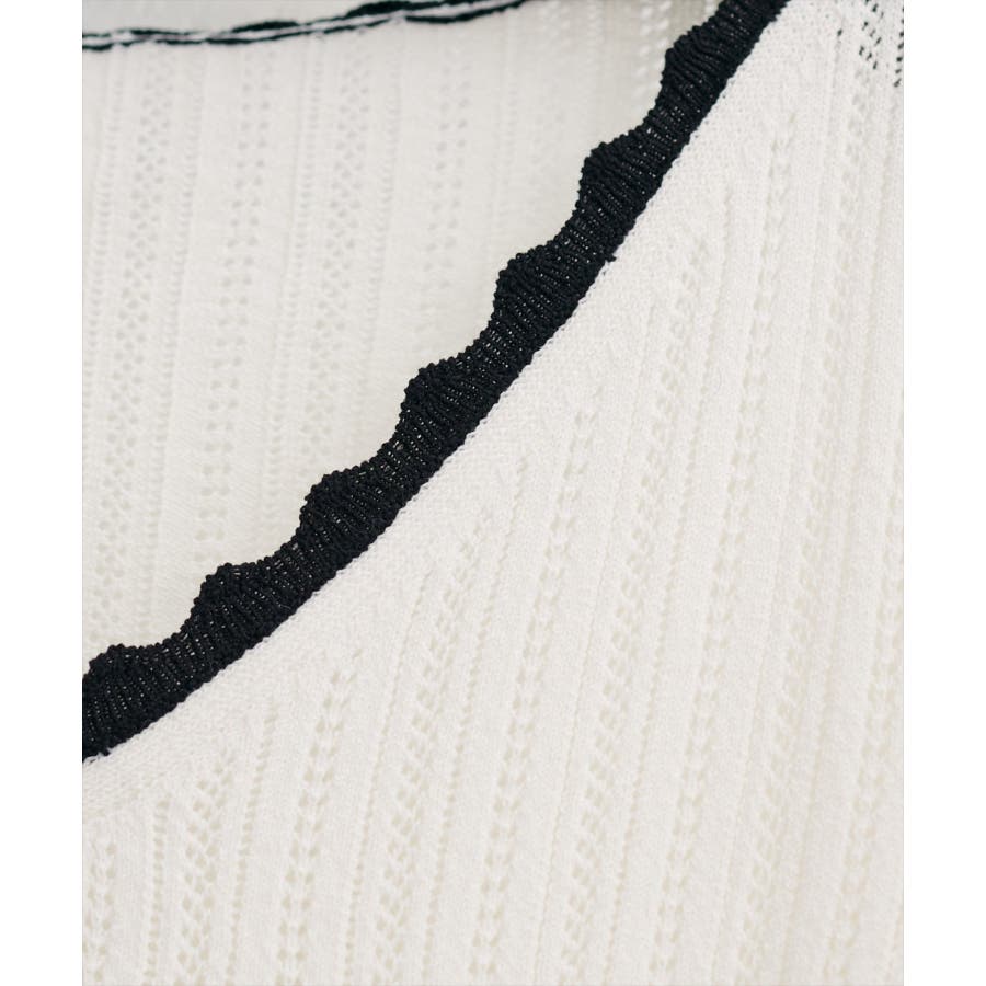涼しげな印象の透かし編みは、見た目にも着心地にも軽やか。インナーの色を透けさせて、遊び心のあるレイヤードスタイルもおすすめです。