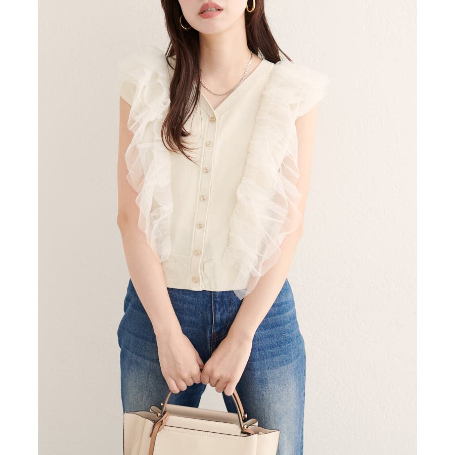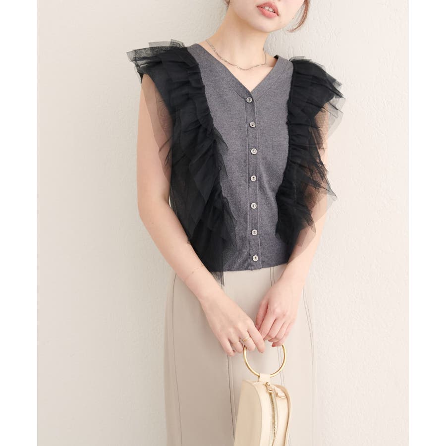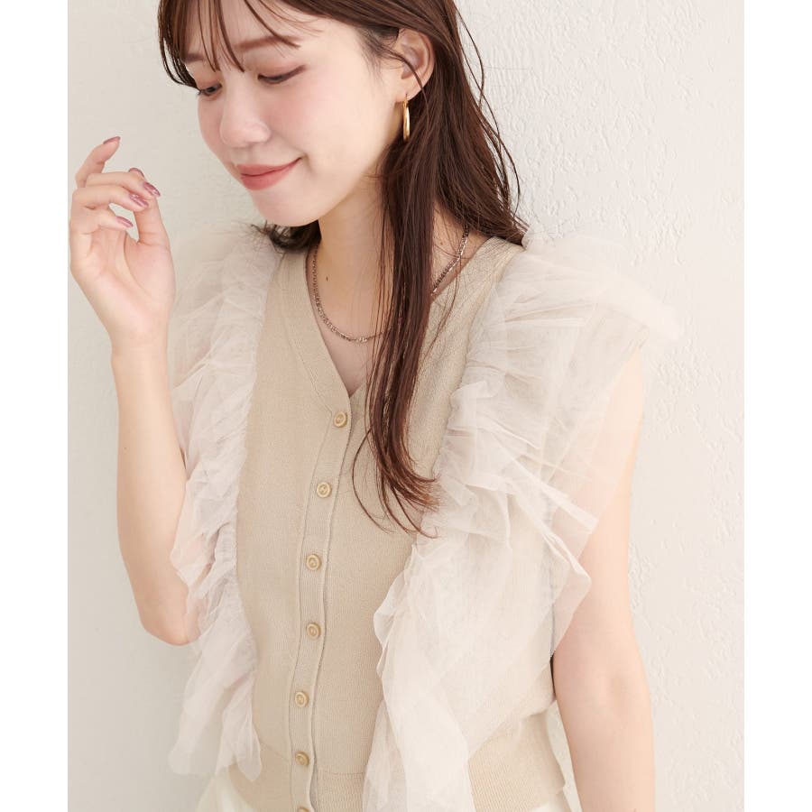 繊細なチュールフリルが、着る人の美しさを引き立てるニットベスト。