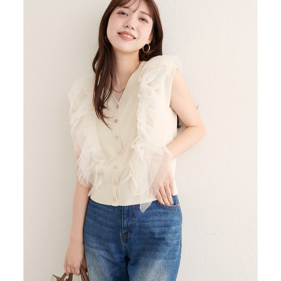 【natural couture】チュールフリルニットベスト