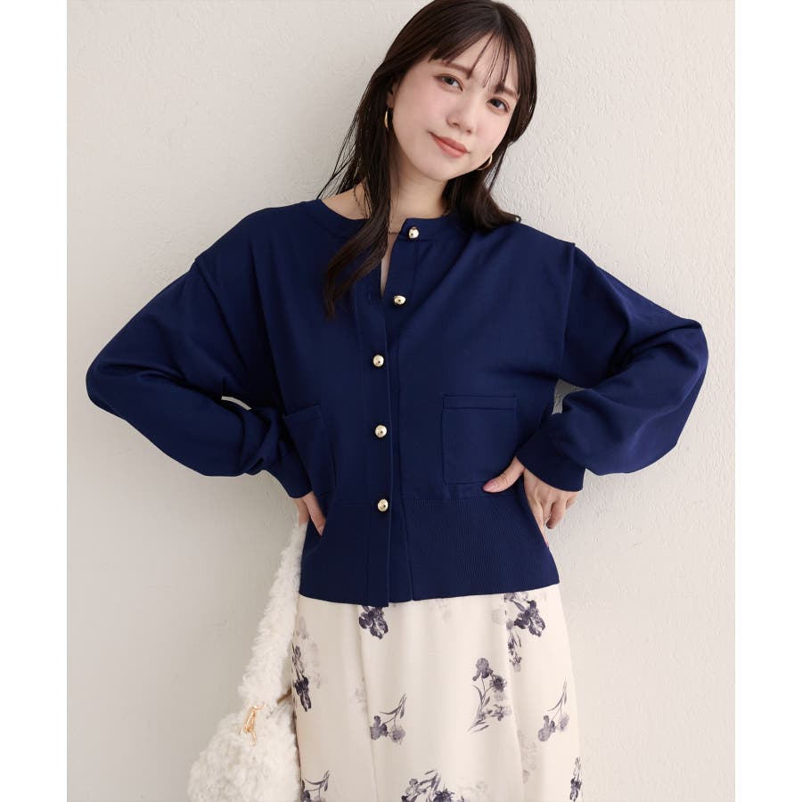 【natural couture】ぷっくり金釦ポケ付きカーデ