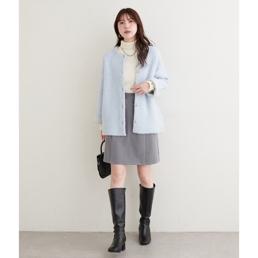 台形シルエットは、気になる腰回りをさりげなくカバーしつつ、脚を細く長く見せてくれる嬉しい効果も。