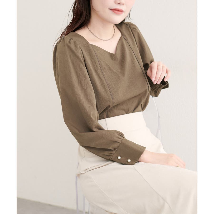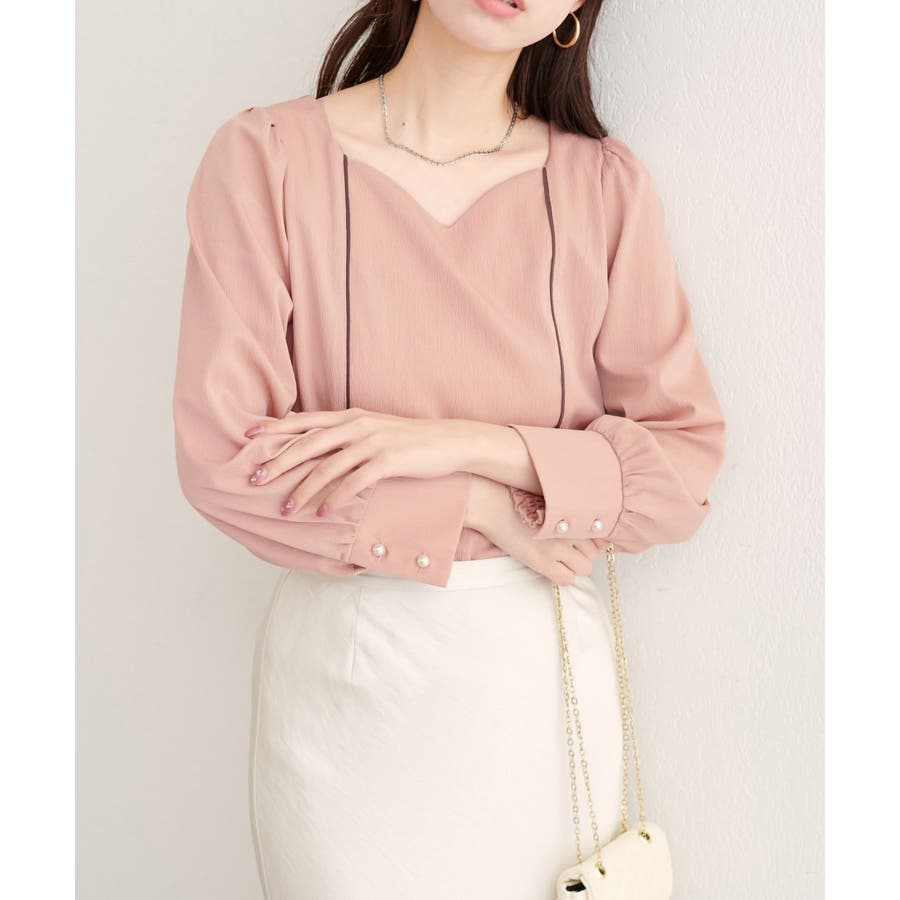 上品な甘さをまとう、大人のためのブラウス。デコルテを美しく見せるハートネックと、繊細なパイピングが印象的なブラウス。