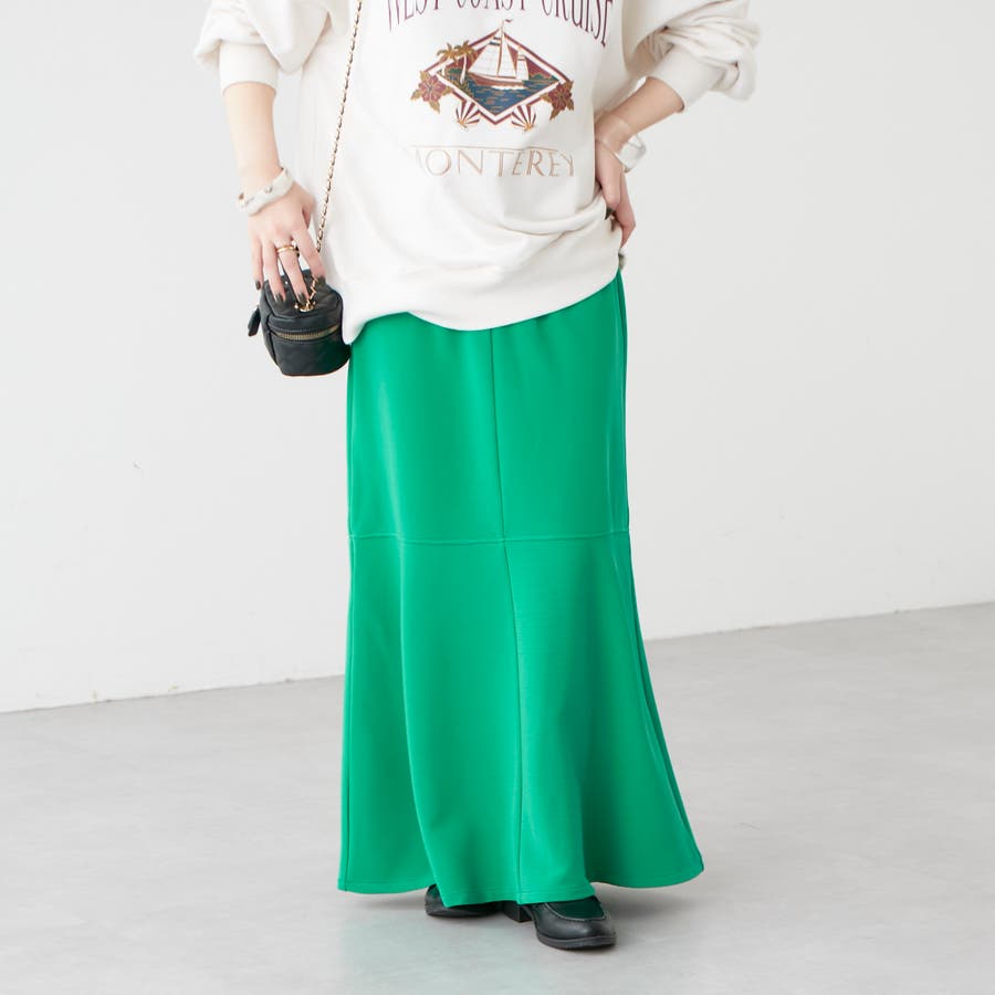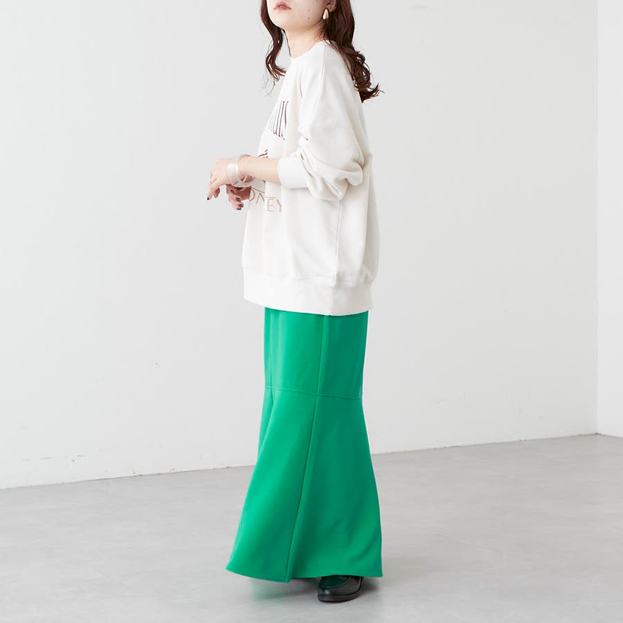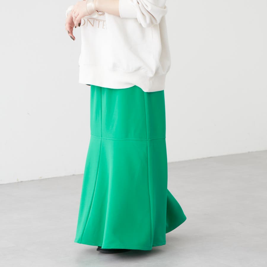 ・ひざ下からふわっと広がるマーメイドシルエットで、一枚で女性らしい印象にしてくれます