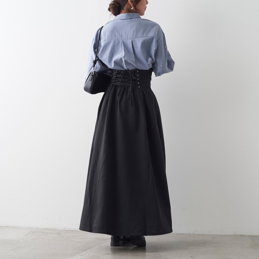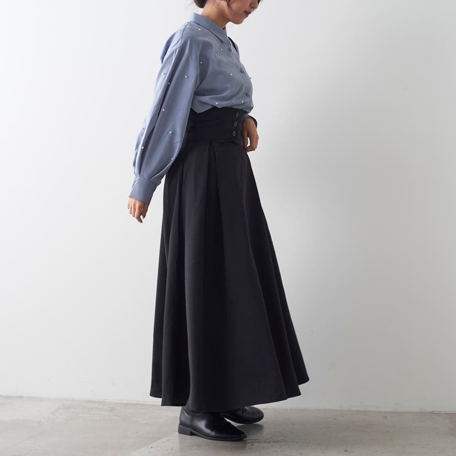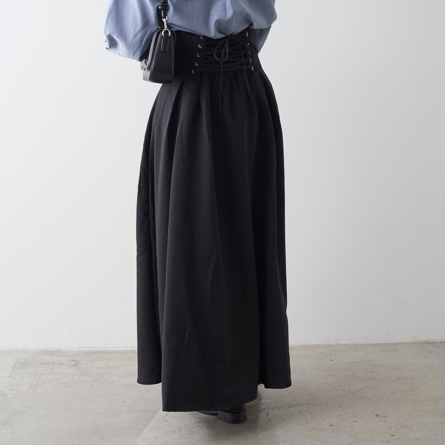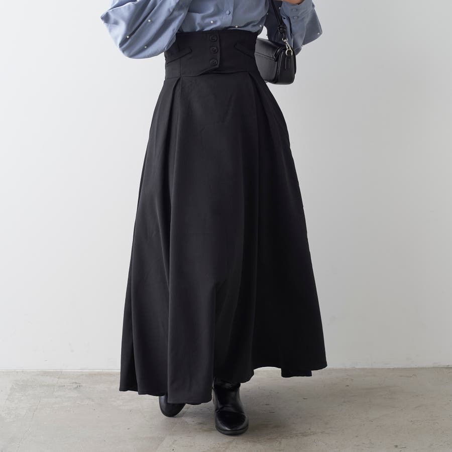 ・コルセットのような幅広のウエストデザインでスタイルが良く見えるスカート
