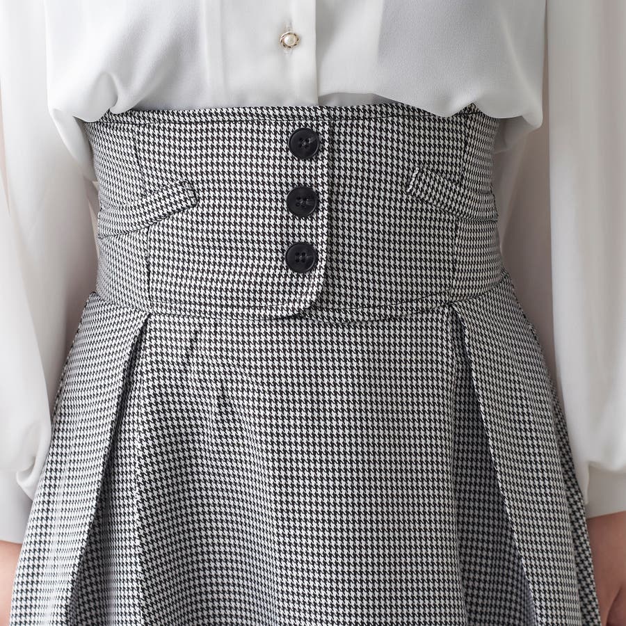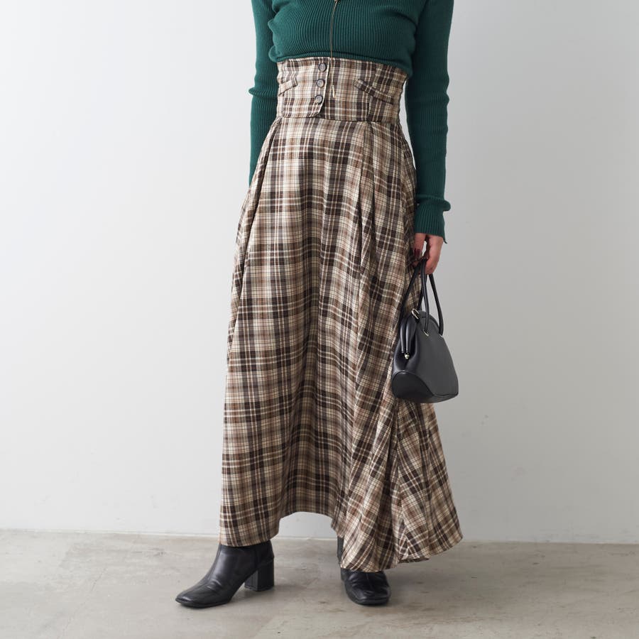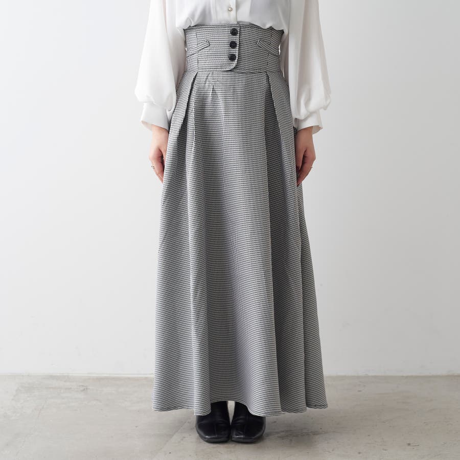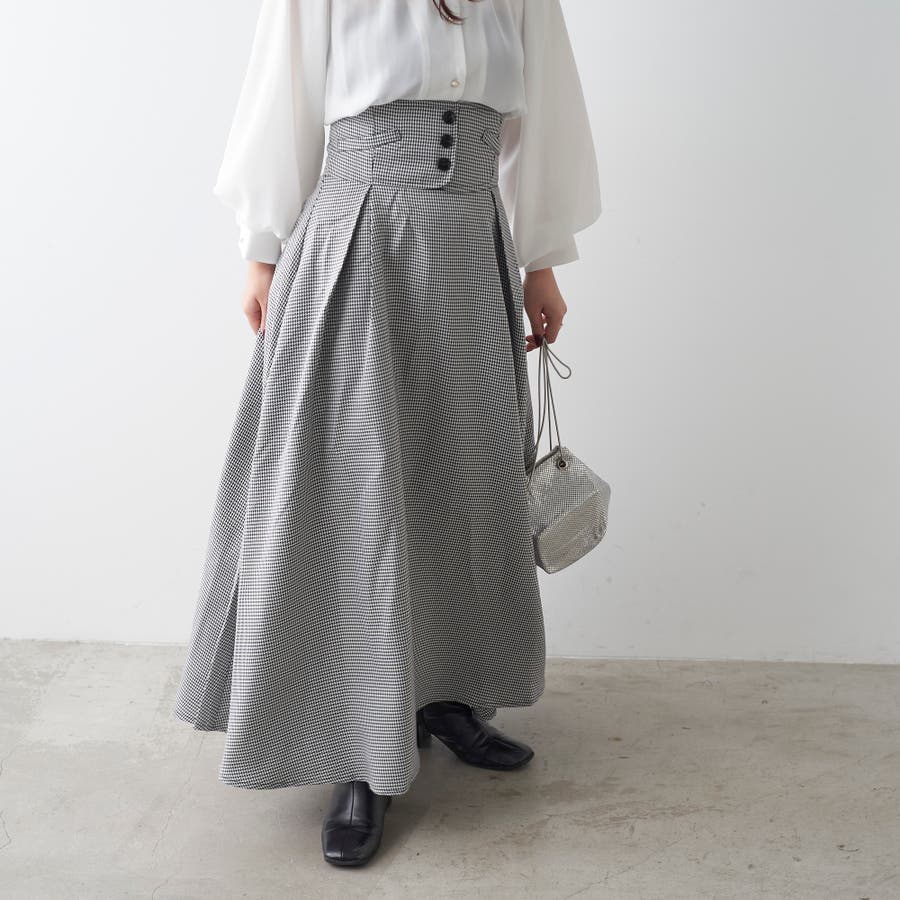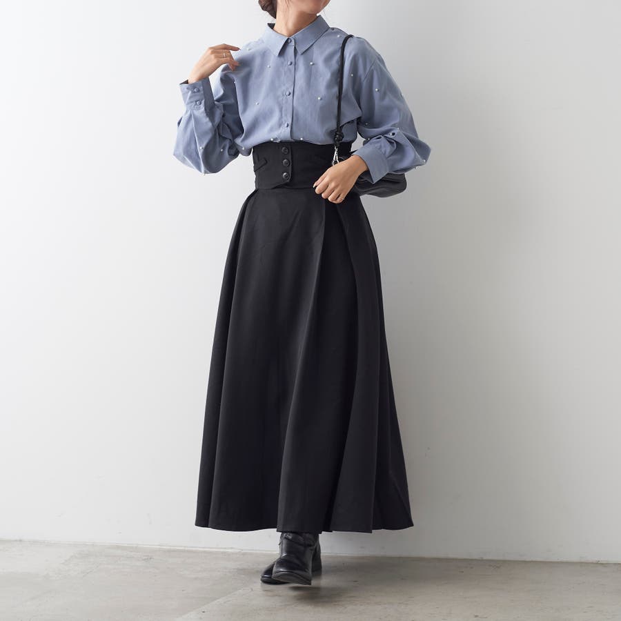 ・コルセットのような幅広のウエストデザインでスタイルが良く見えるスカート