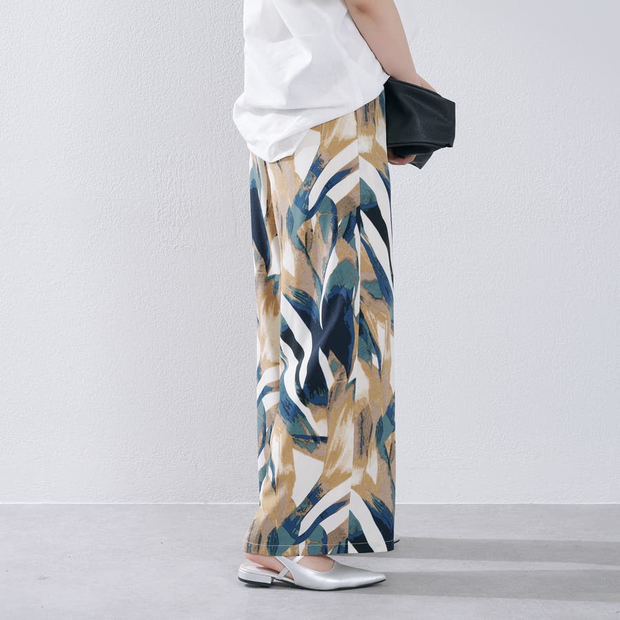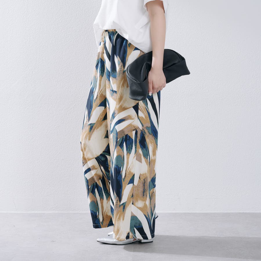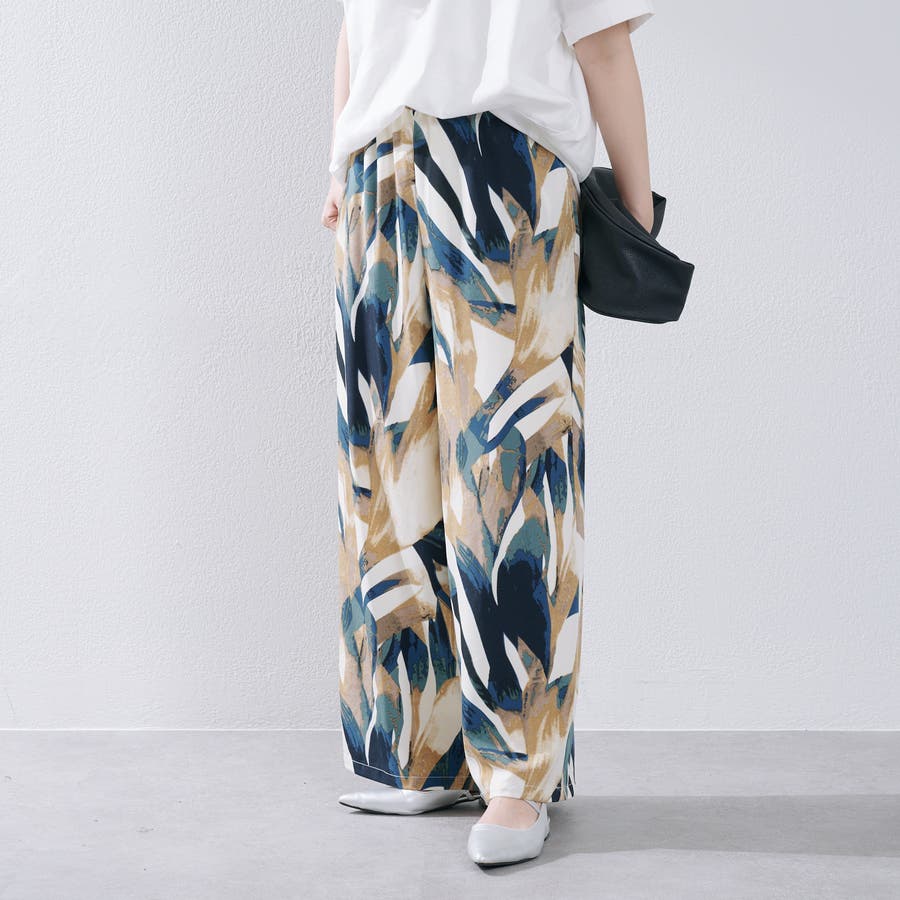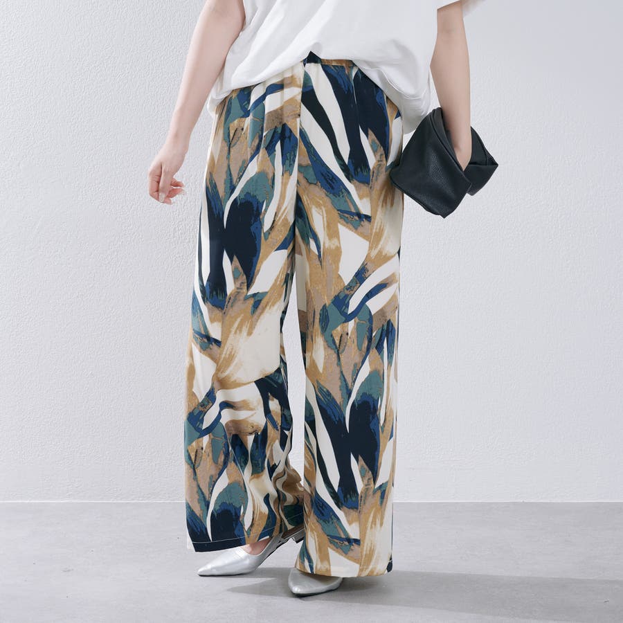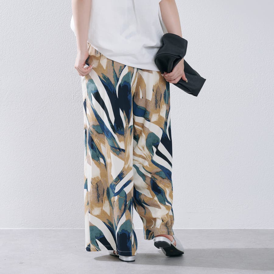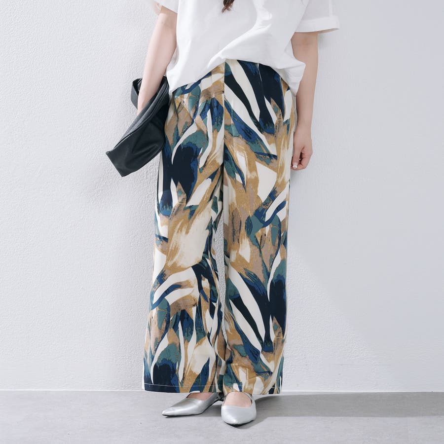 ・ぱっと目を惹く総柄デザインが印象的なイージーパンツ