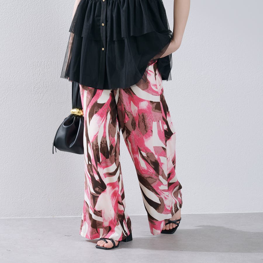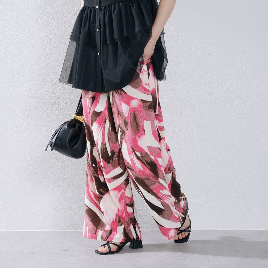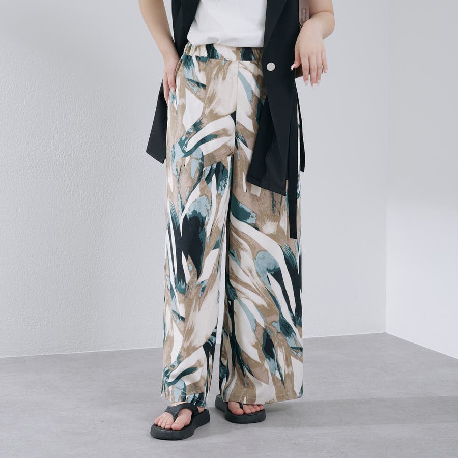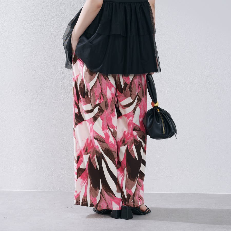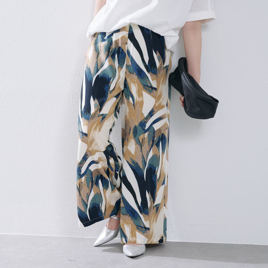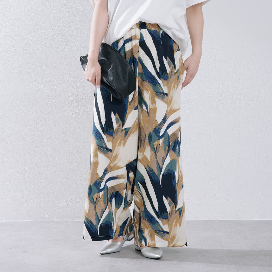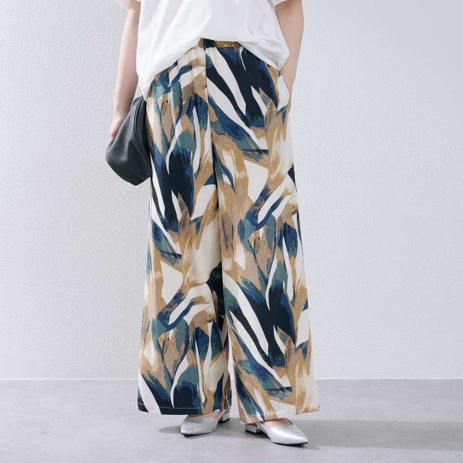 ・ぱっと目を惹く総柄デザインが印象的なイージーパンツ