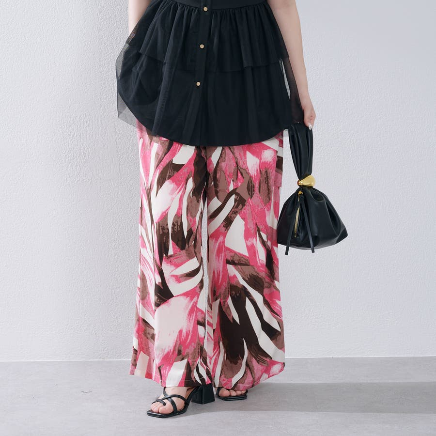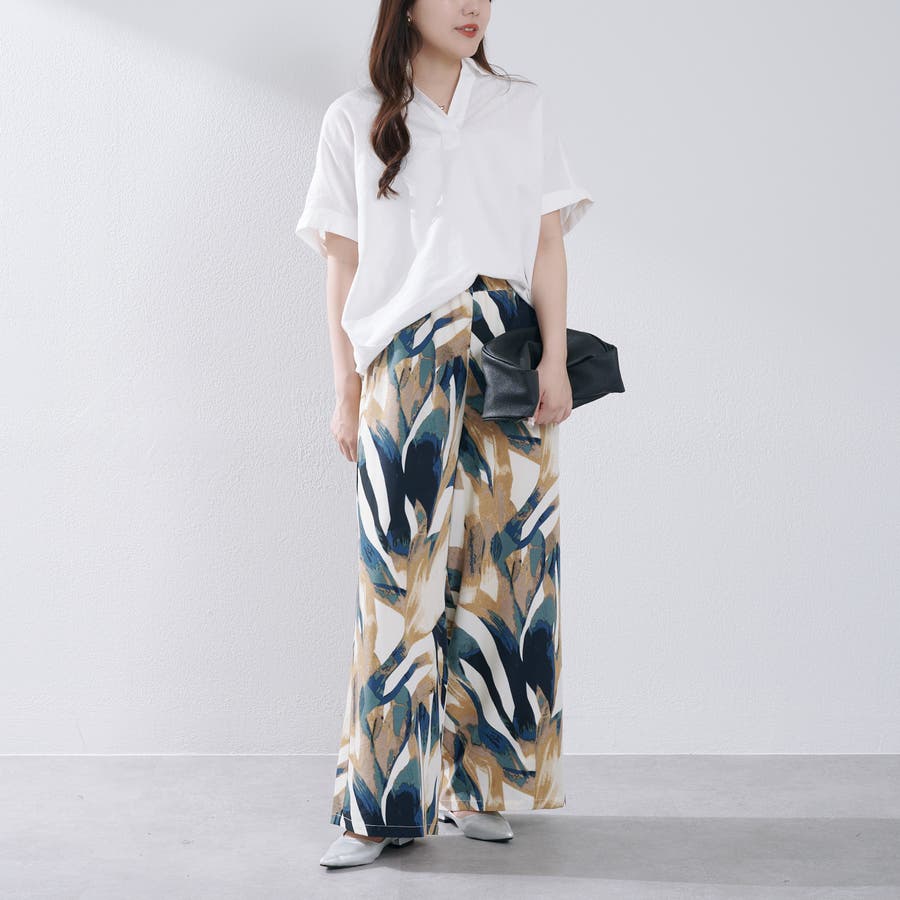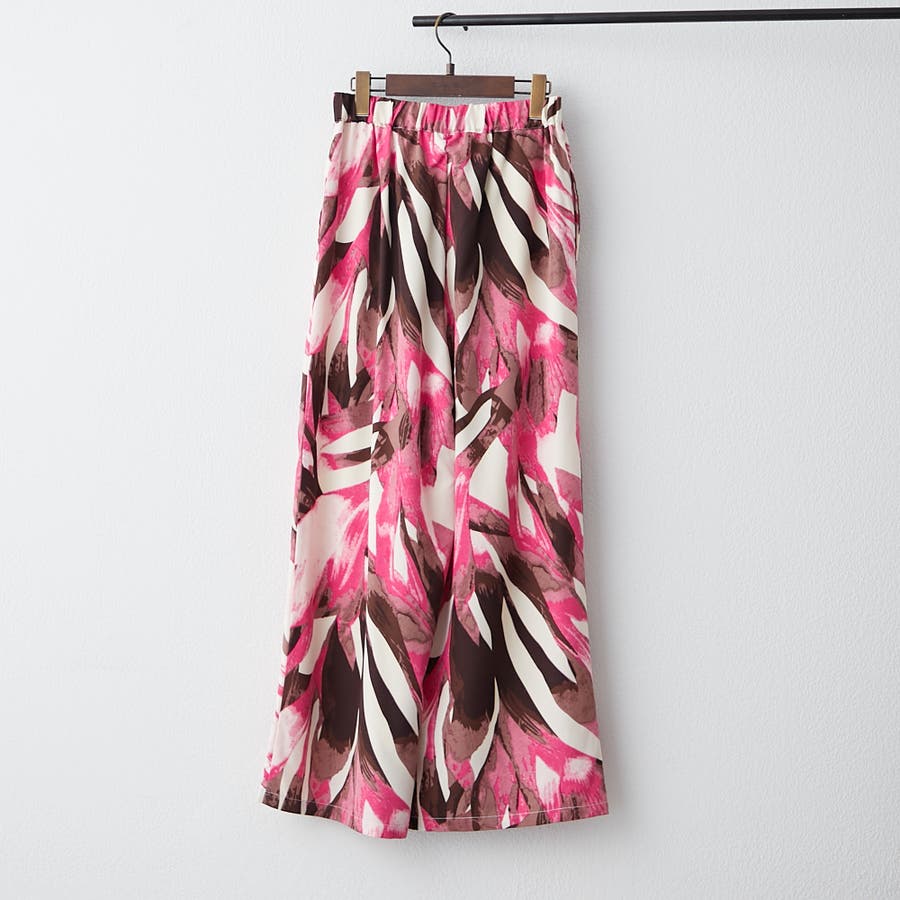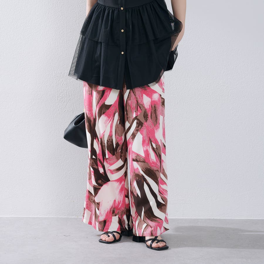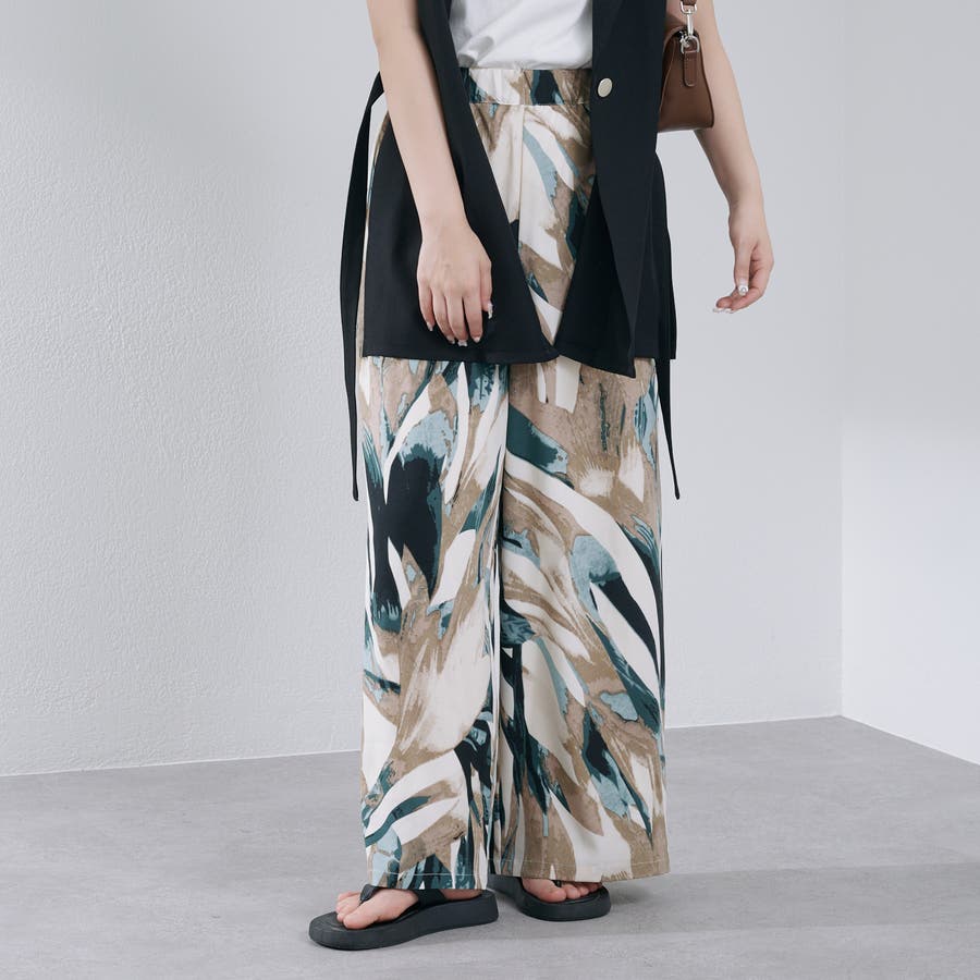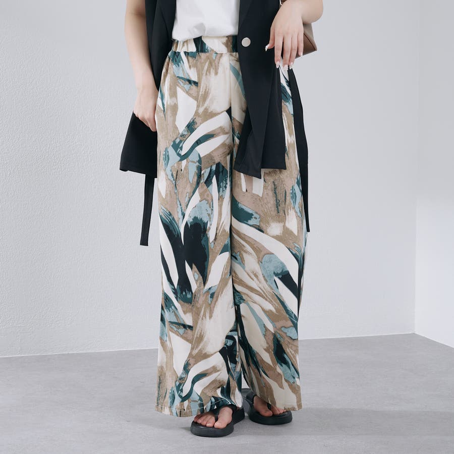 ・ぱっと目を惹く総柄デザインが印象的なイージーパンツ